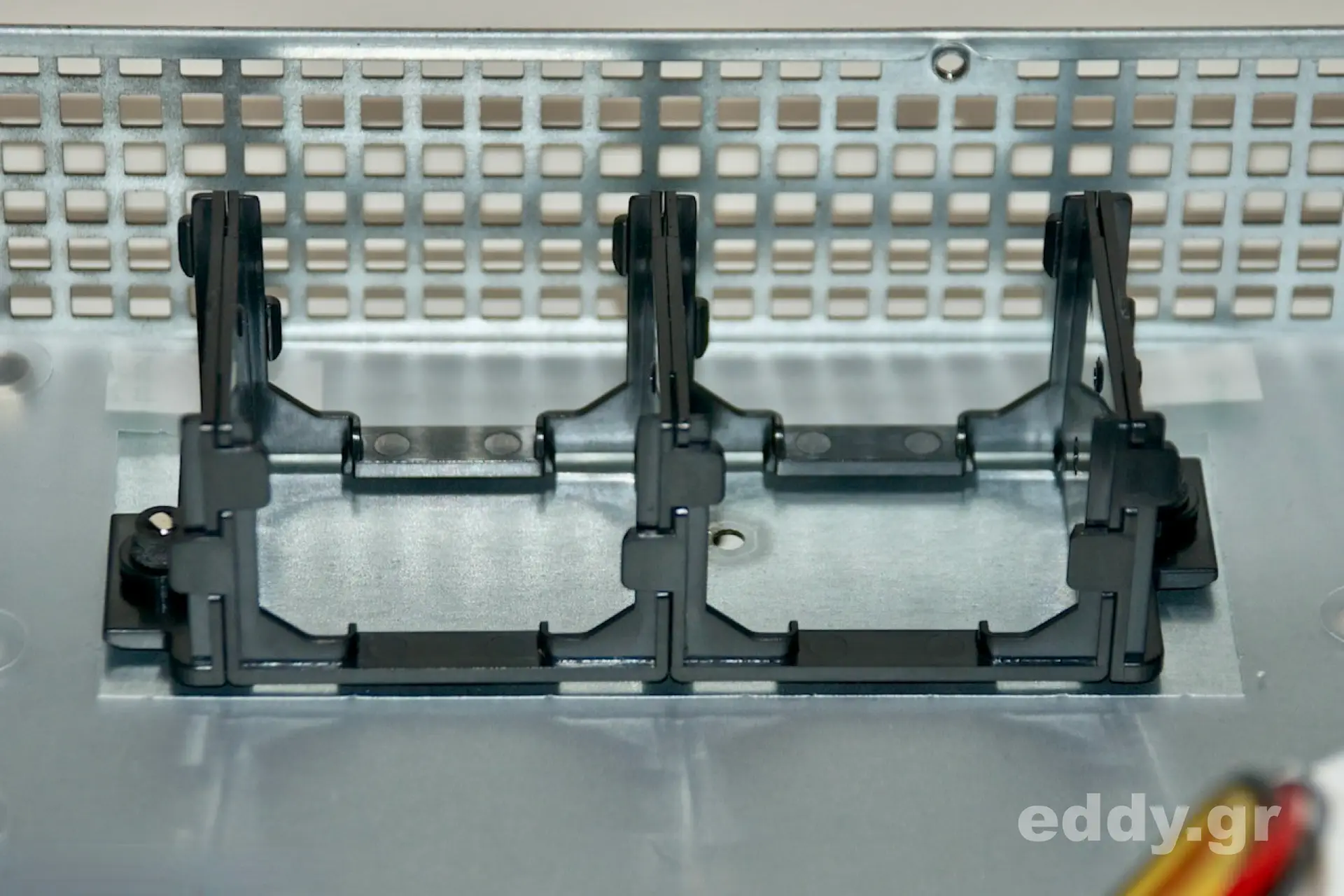 Niemand vermisst Schneckenlüfter und so wild ist die Sache mit den Supermicro Lüfterhaltern gar nicht. Die zwei einzelnen Lüfterhalter werden an der dem anderen Exemplar zugewandten Seite vom vorsichtig zu trennenden Seitenteil befreit und letztendlich werden die beiden Halter zu einem Doppelhalter.