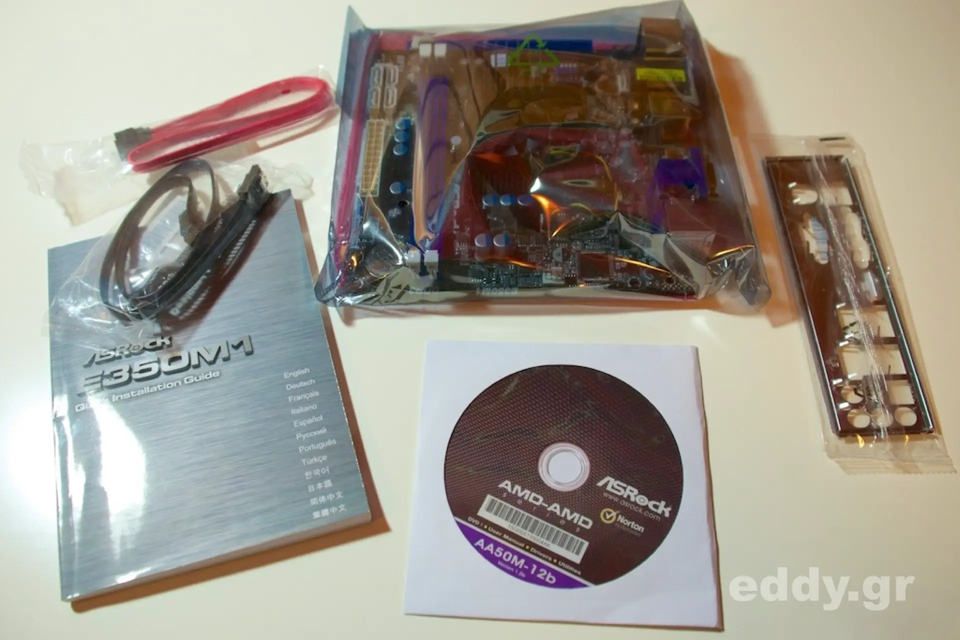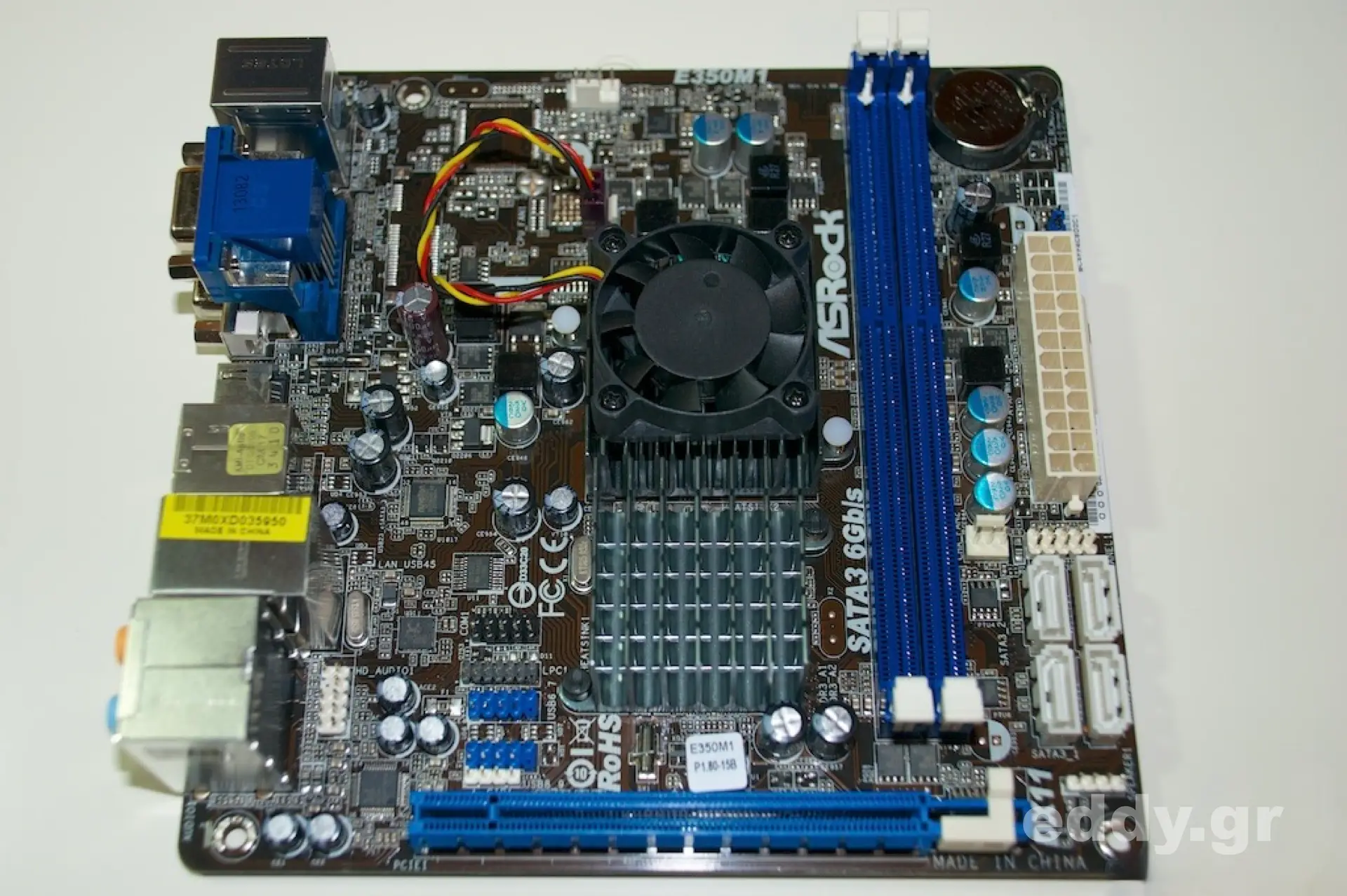 - Motherboard ASRock E350M1 mit AMD E-350 (und AMD Radeon HD 6310 Grafik) onboard