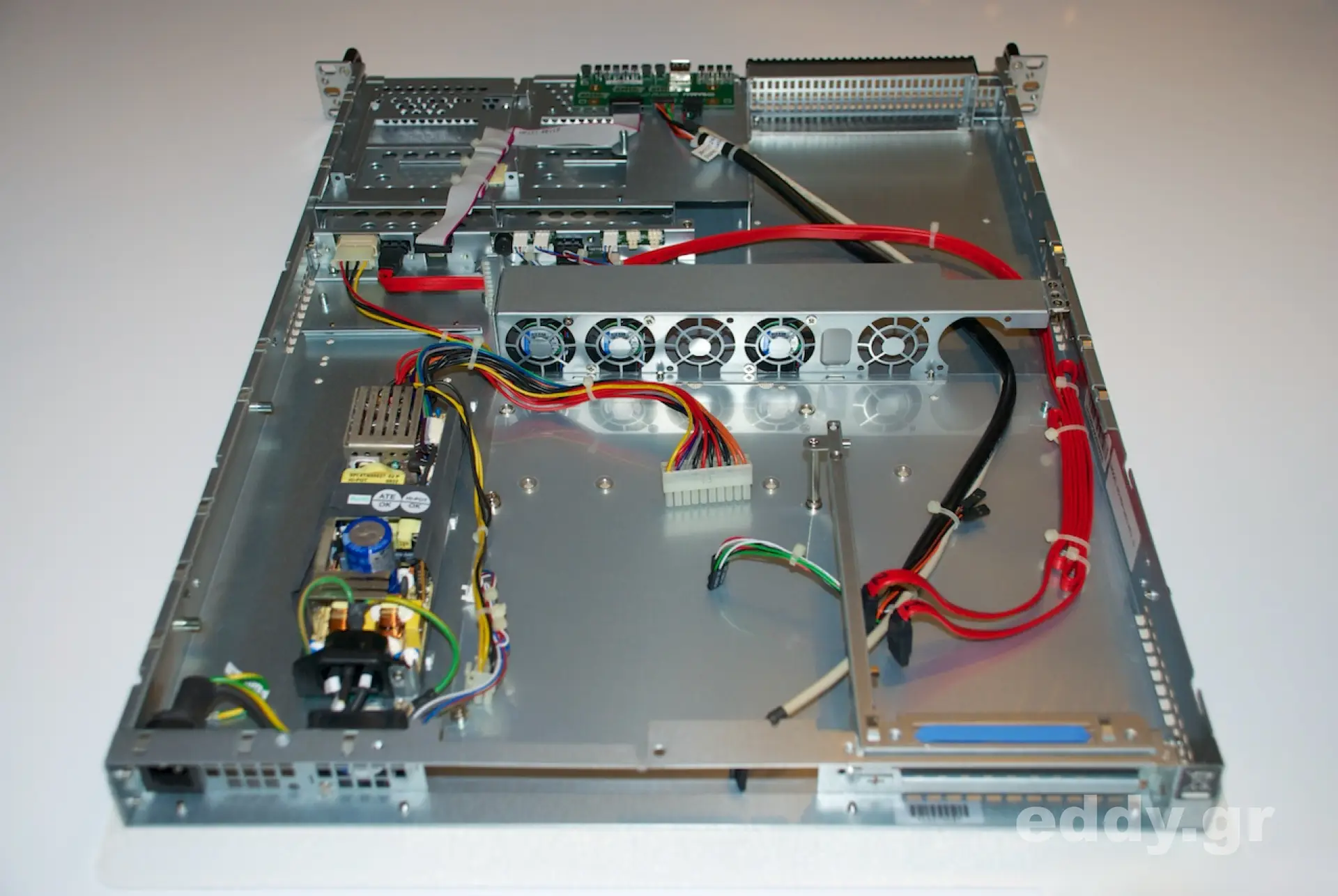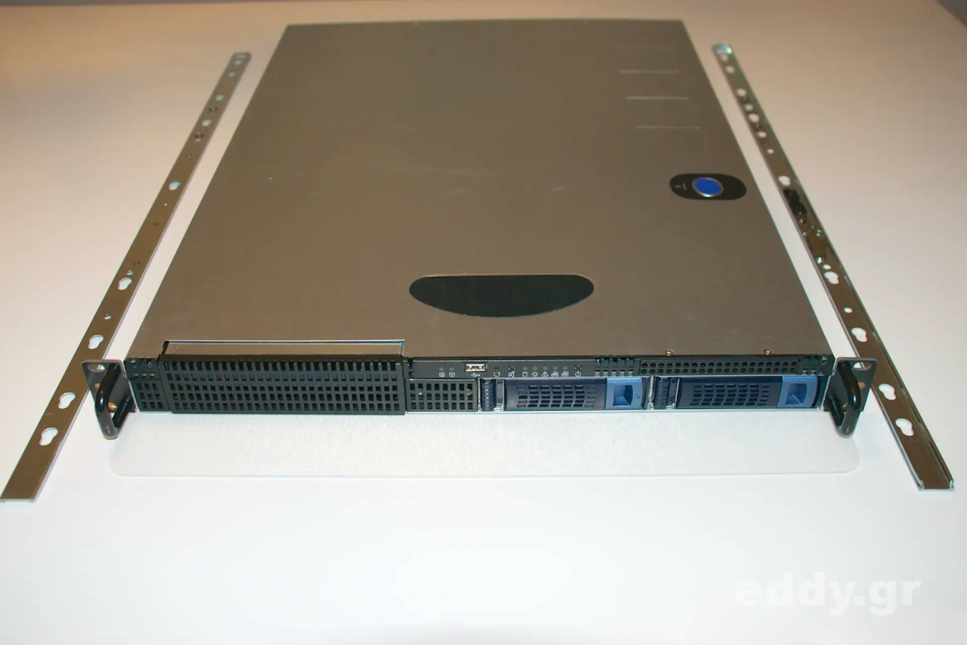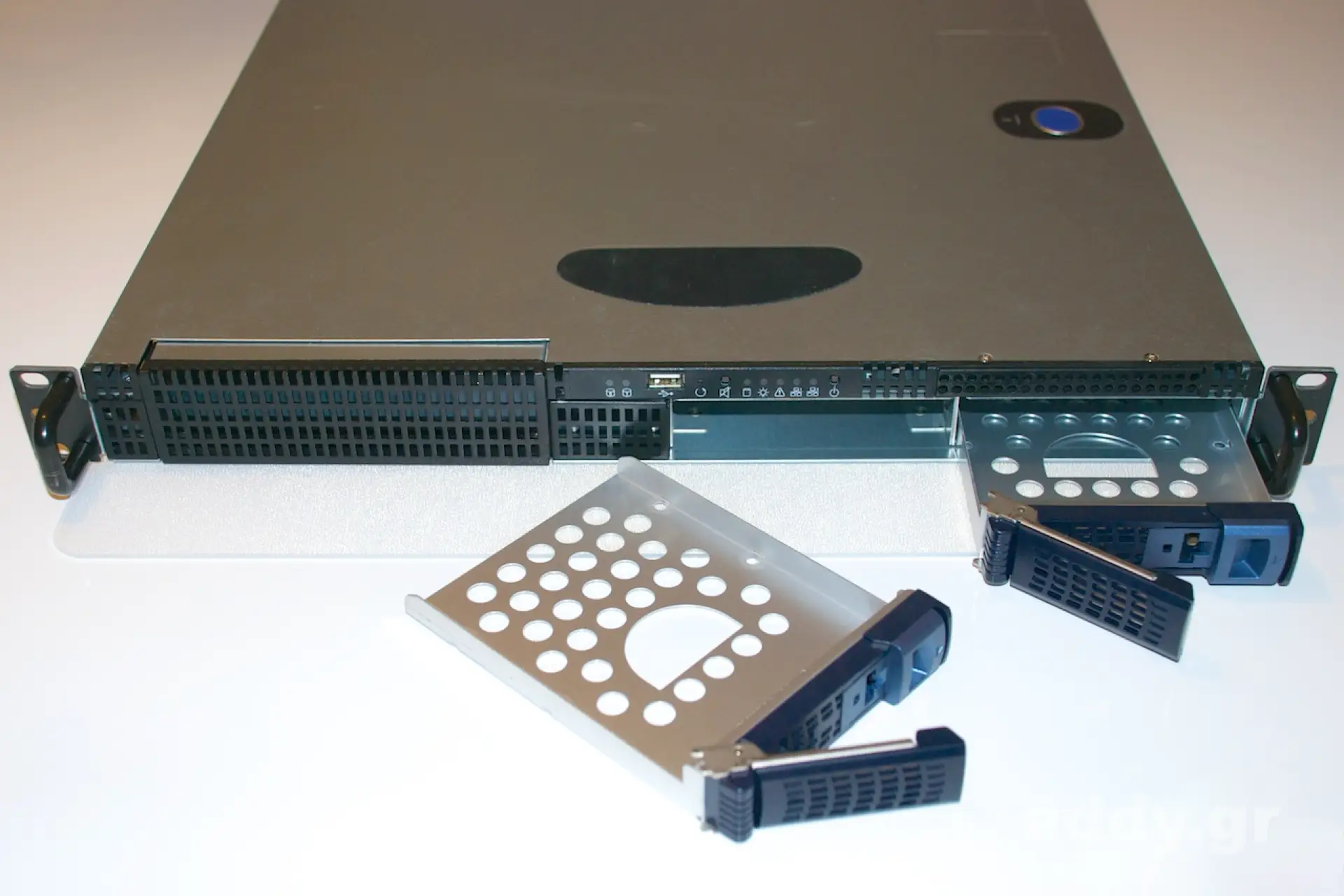 Das am 01. August 2003 von Chenbro in Taipei vorgestellte RM12402 mit lediglich einer Höheneinheit ist für den genannten Einsatzzweck geradezu prädestiniert. Damals von Chenbro für ATX Boards mit XEON vorgesehen, würden ich den Kasten eher für billige APUs hernehmen, also Intel Atom oder AMD E-350, E-450 oder E2-2000. Dazu dann noch 8 Gigabytes RAM rein. Im Gegensatz zum früher von mir vorgestellten RM214000 mit zwei Höheneinheiten und sechs 3,5″ Einschüben wartet das RM12402 mit lediglich 2 Slots auf.