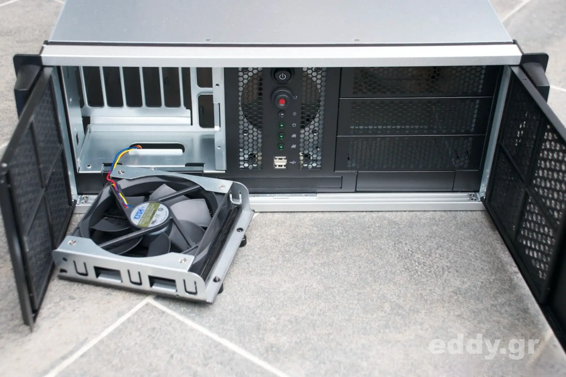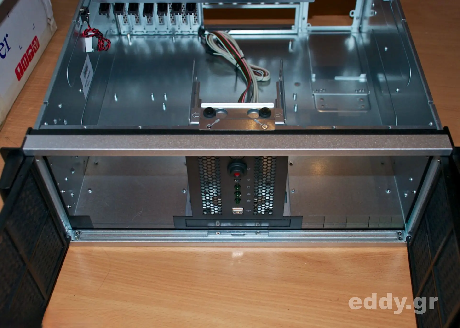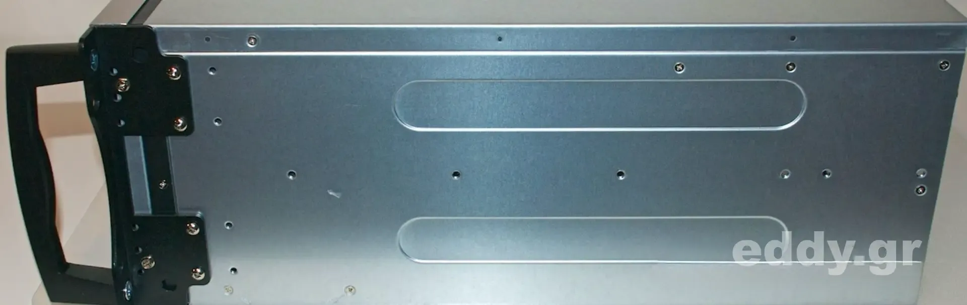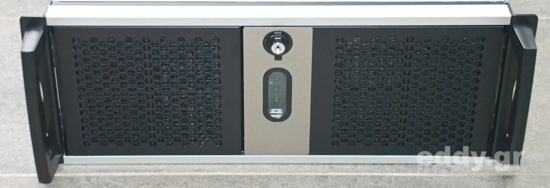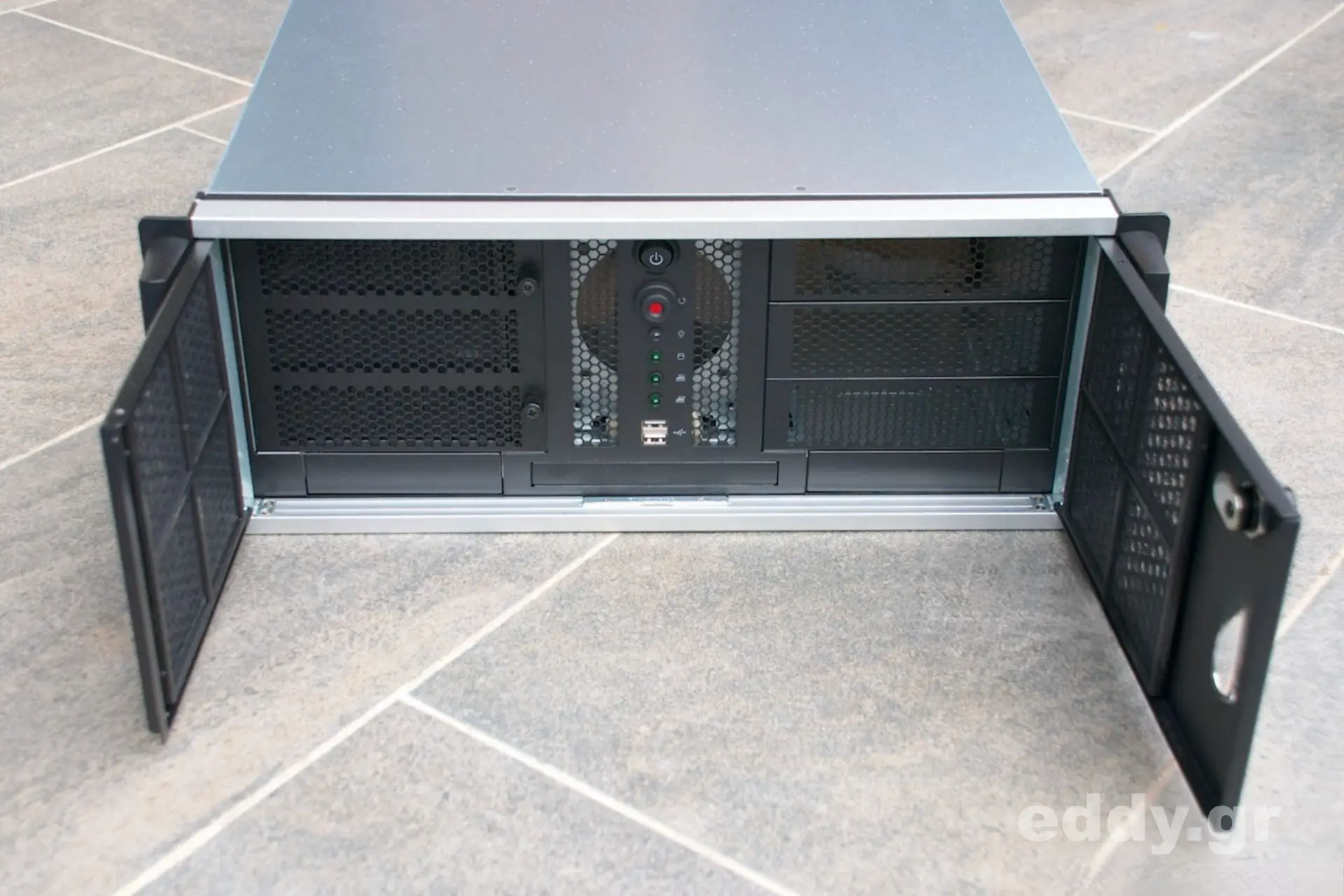 Abgesehen von den vorgenannten kleinen (!) Nachteilen im Vergleich zum höherwertigen RM42200 hat man es durchweg mit einem sehr tauglichen, schicken, massiven und gut verarbeiteten 19″-Gehäuse zu tun. Verstellbare Kartenhalter und Intrusion Switch sind selbstverständlich vorhanden. Letzteres ließe sich bestimmt wunderbar mit einem Linux Skript nutzen.