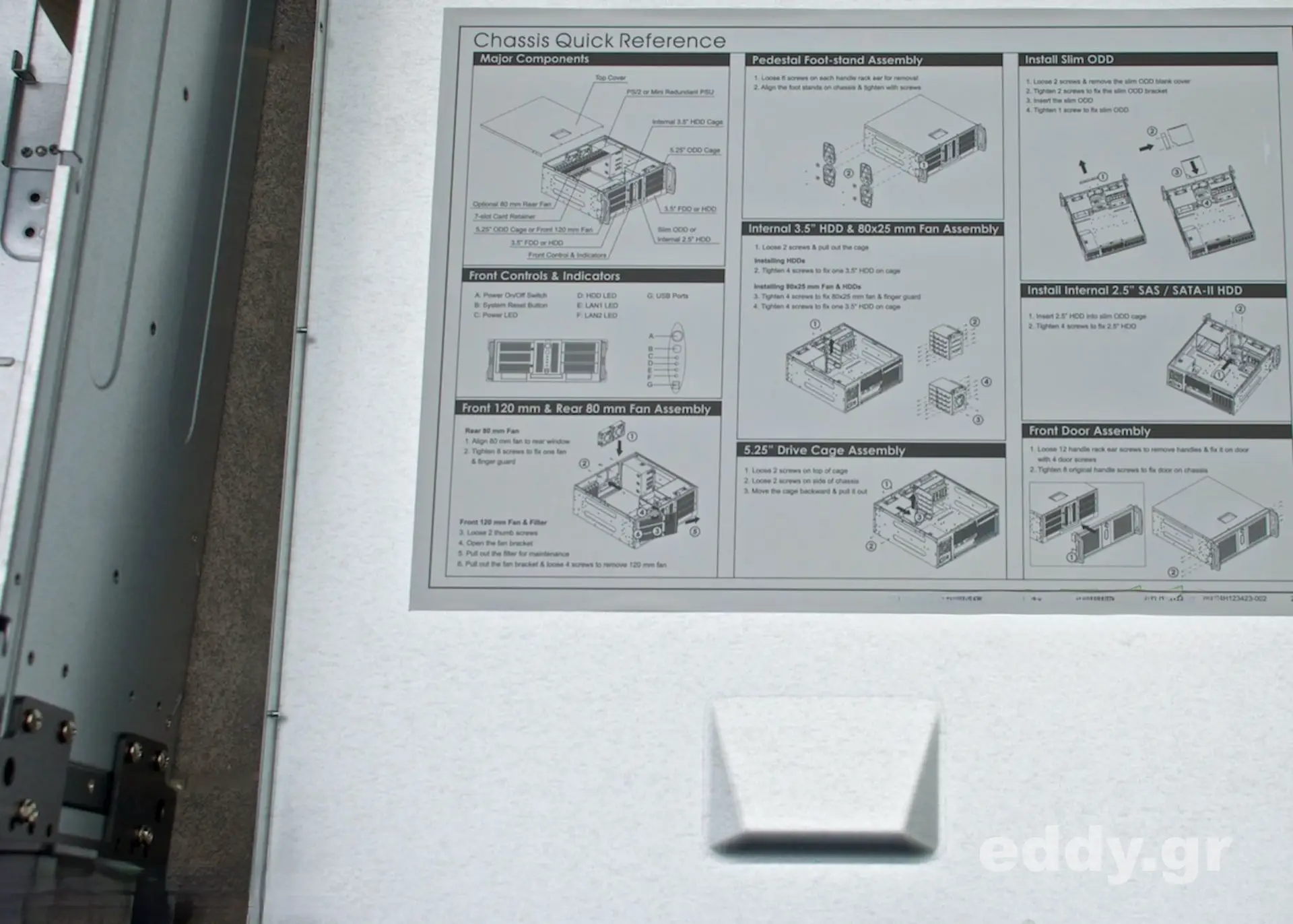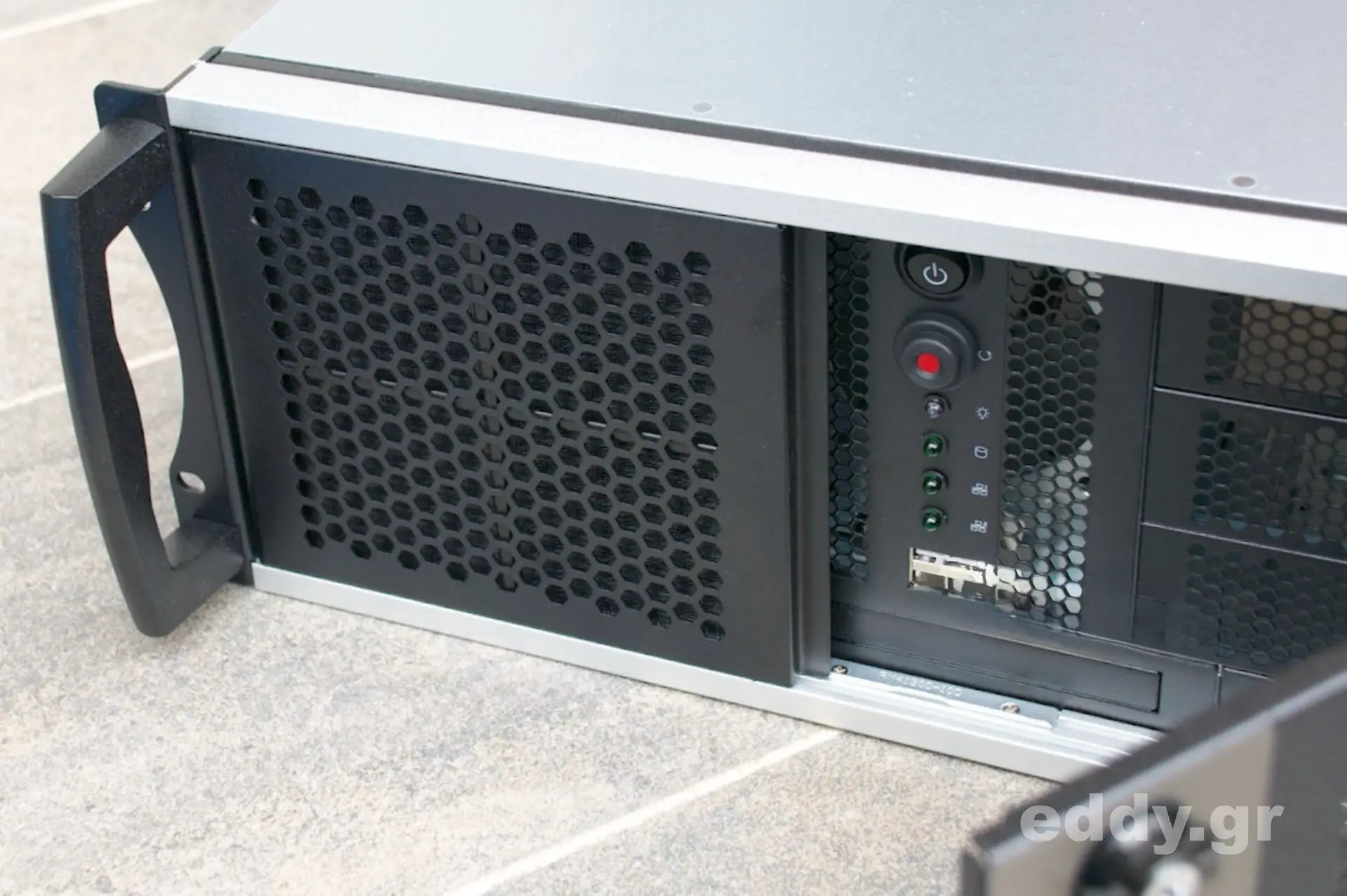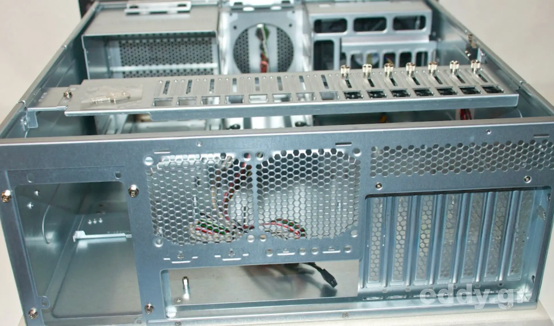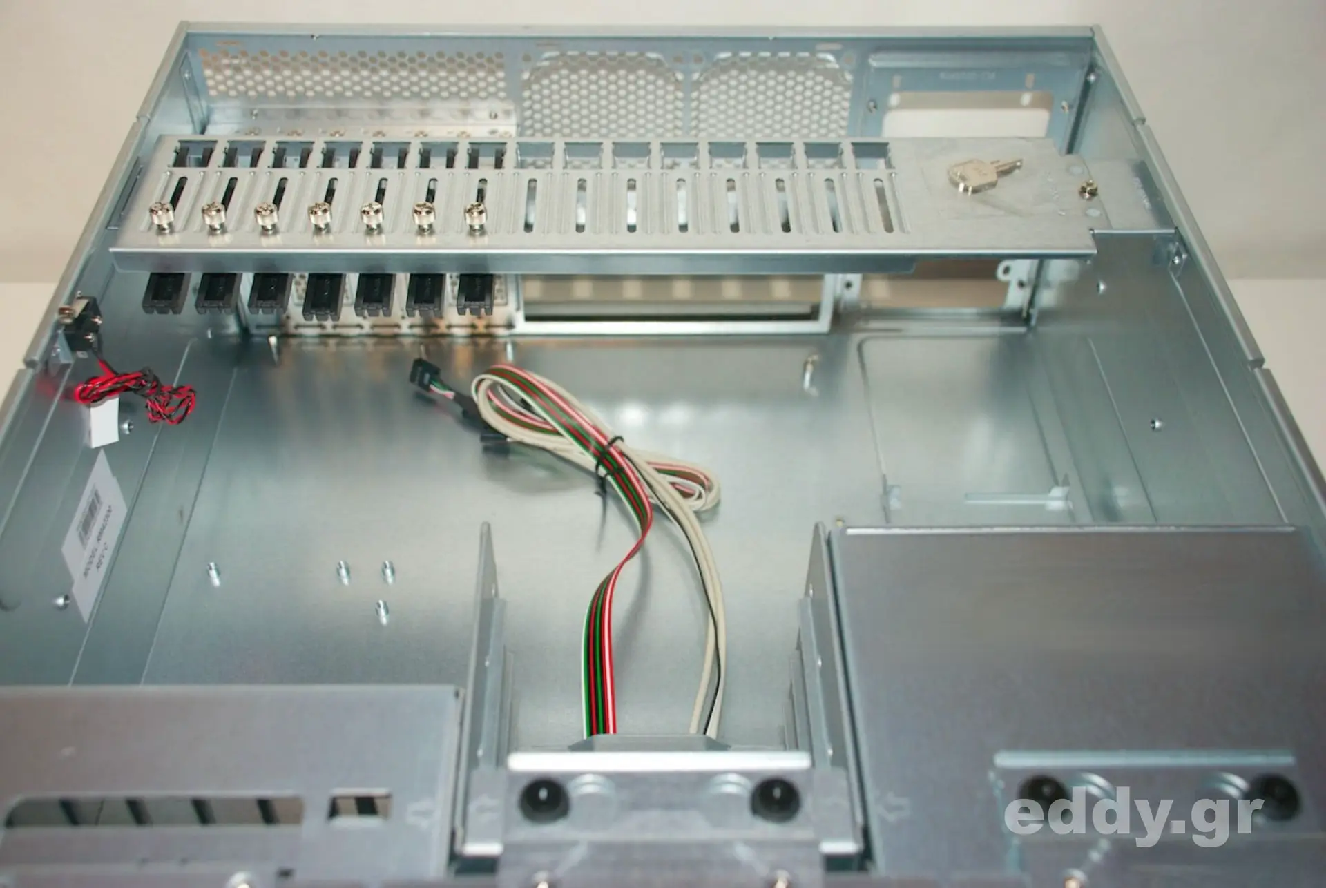 Abgesehen von den vorgenannten kleinen (!) Nachteilen im Vergleich zum höherwertigen RM42200 hat man es durchweg mit einem sehr tauglichen, schicken, massiven und gut verarbeiteten 19″-Gehäuse zu tun. Verstellbare Kartenhalter und Intrusion Switch sind selbstverständlich vorhanden. Letzteres ließe sich bestimmt wunderbar mit einem Linux Skript nutzen.