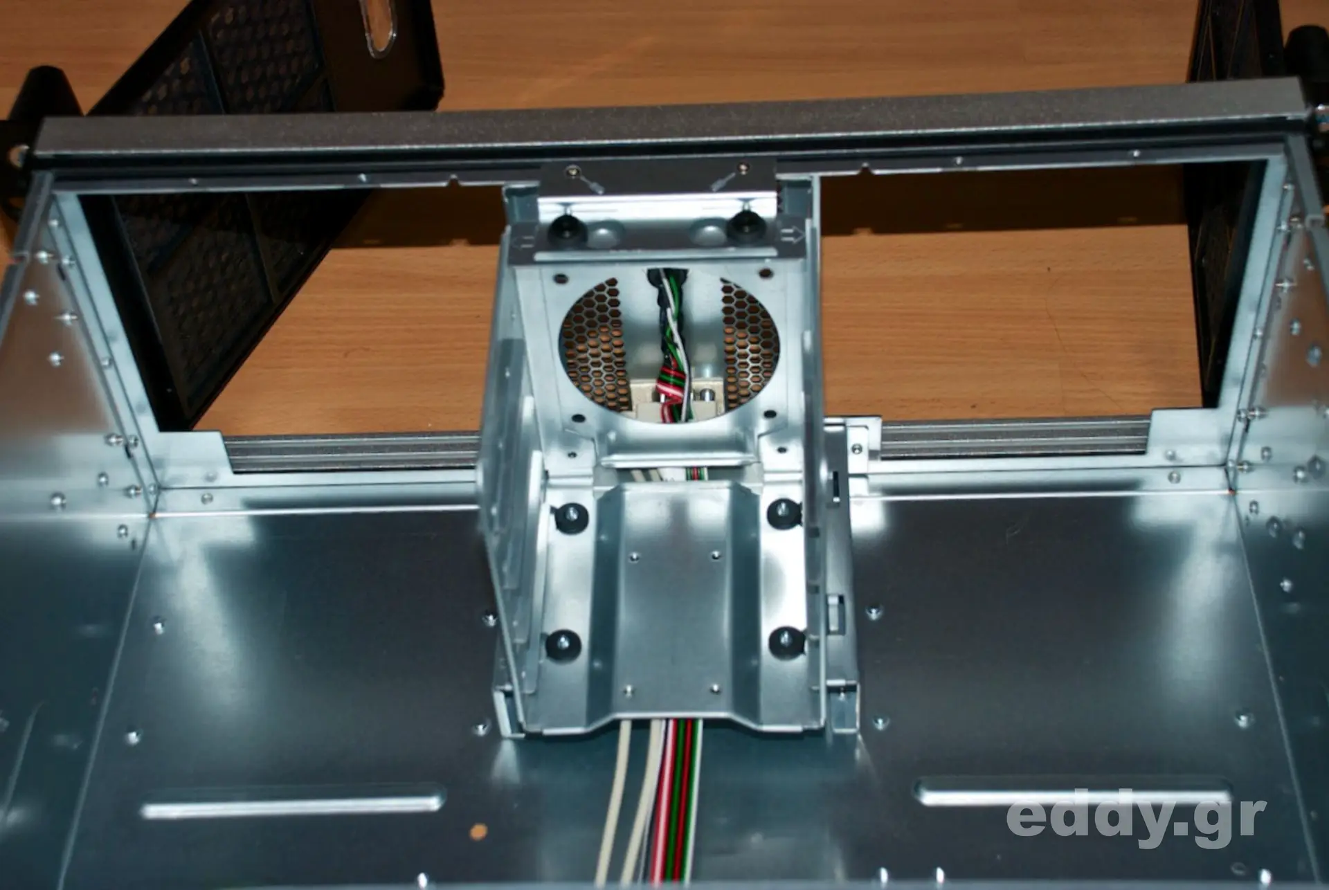 Auf die Frage eines lieben Lesers meines Blog, ob das in der Vergangenheit hier von mir vorgestellte Chenbro Storage Kit SK33502 in das RM42300 gleich zweimal passen würde, wurden ich sofort tätig! Den ganzen Plunder aus den Schächten raus und es sieht sehr gut aus. Man beachte die zwei nachfolgenden Fotos. Sollte passen. In Ermangelung eines freien nicht-im-Betrieb-befindlichen Storage Kits können wir es leider nicht probehalber an beiden Seiten einsetzen. Es sollte aber gehen.
