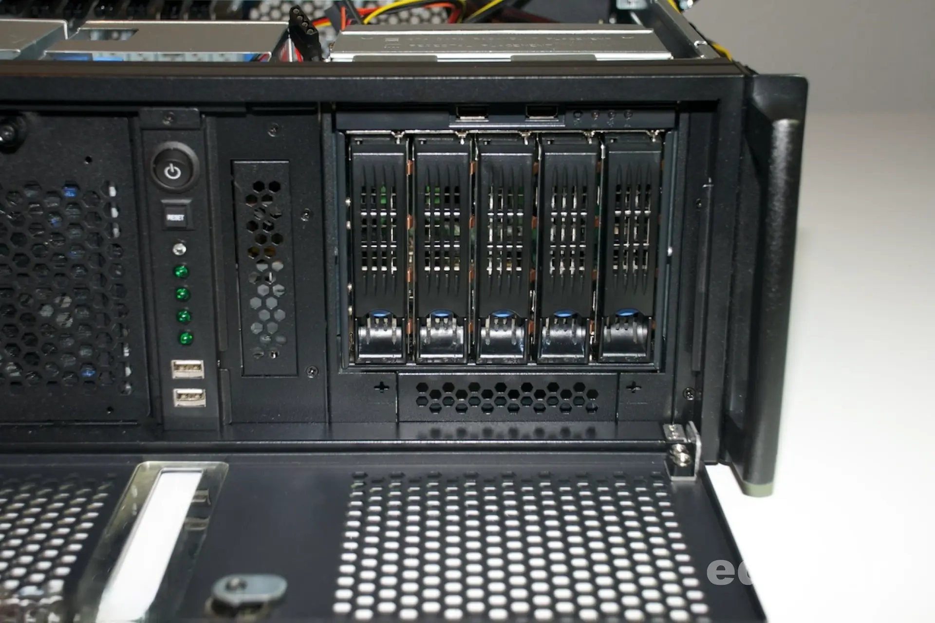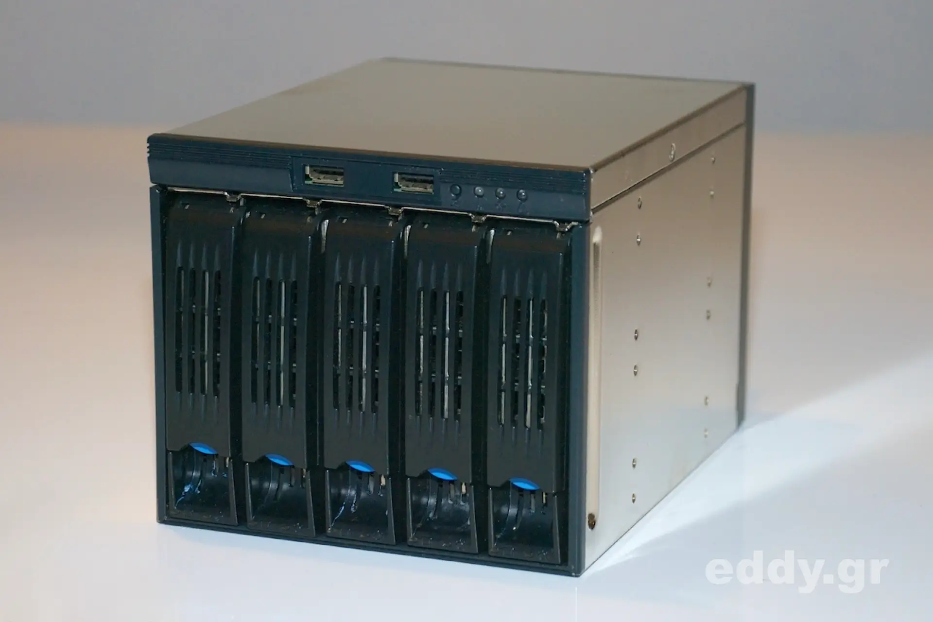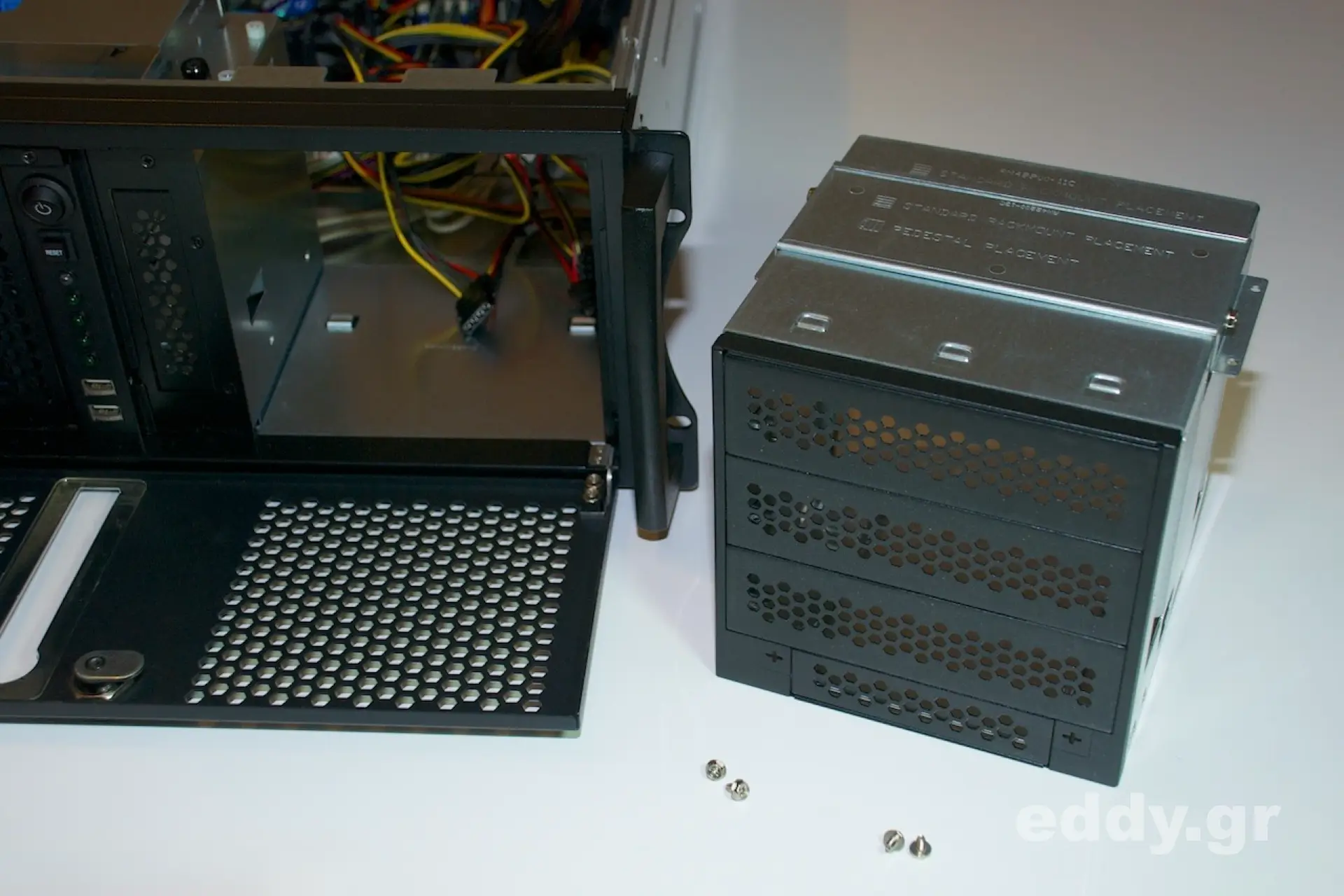 Trotz all seiner Vorteile ist das RM42200 ein 19″ Server Gehäuse und kein spezielles 19″ Storage Gehäuse. Durch die von Chenbro vorgesehene Modularität des RM42200 und das passend gestaltete 5er-Gehäuse SK33502 lässt sich jedoch diesbezüglich hinreichend Abhilfe schaffen. Für den häuslichen Server sind 5 Festplatten meistens genau das, was man für sein RAID oder ZFS RAID haben will.