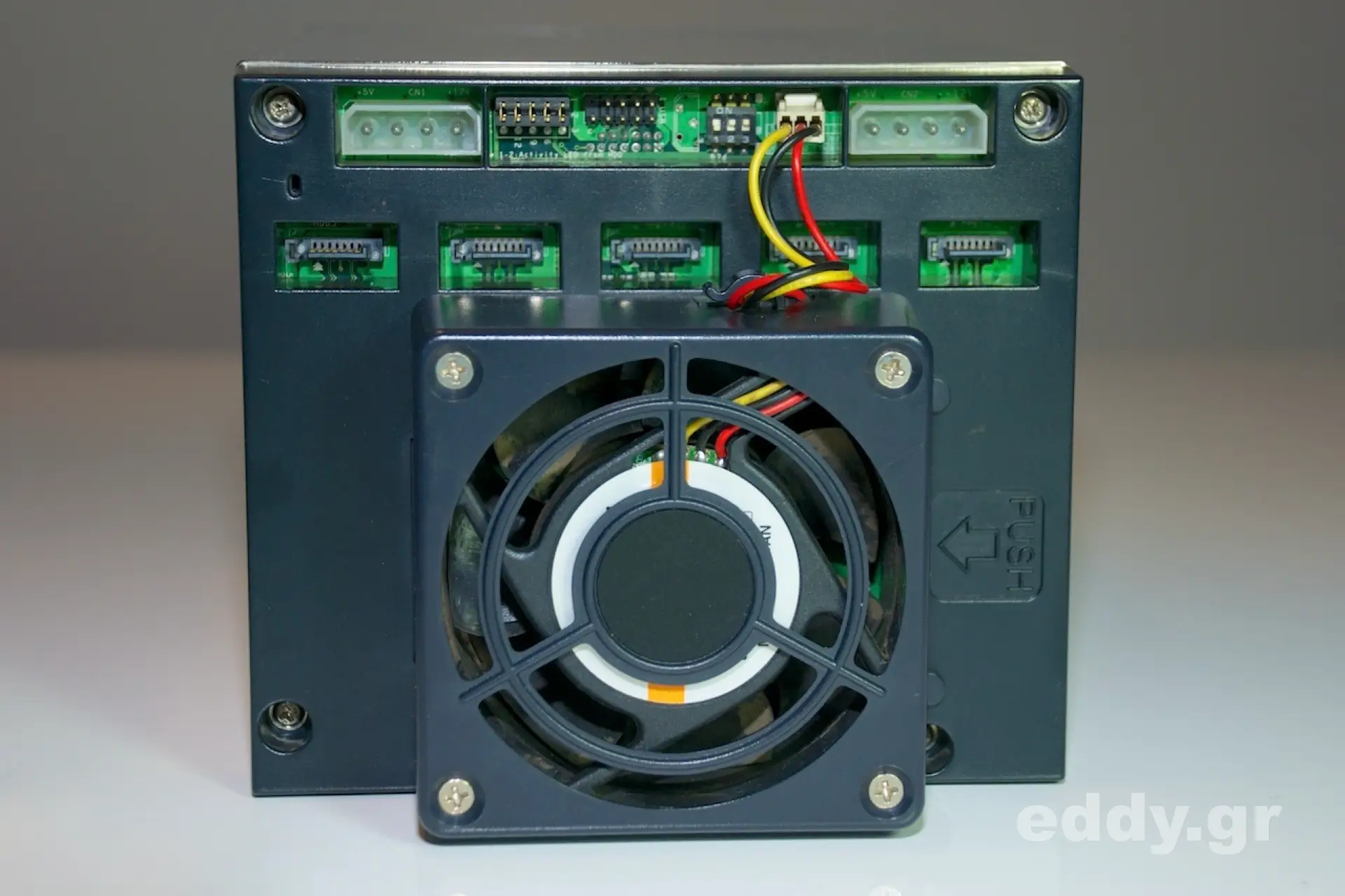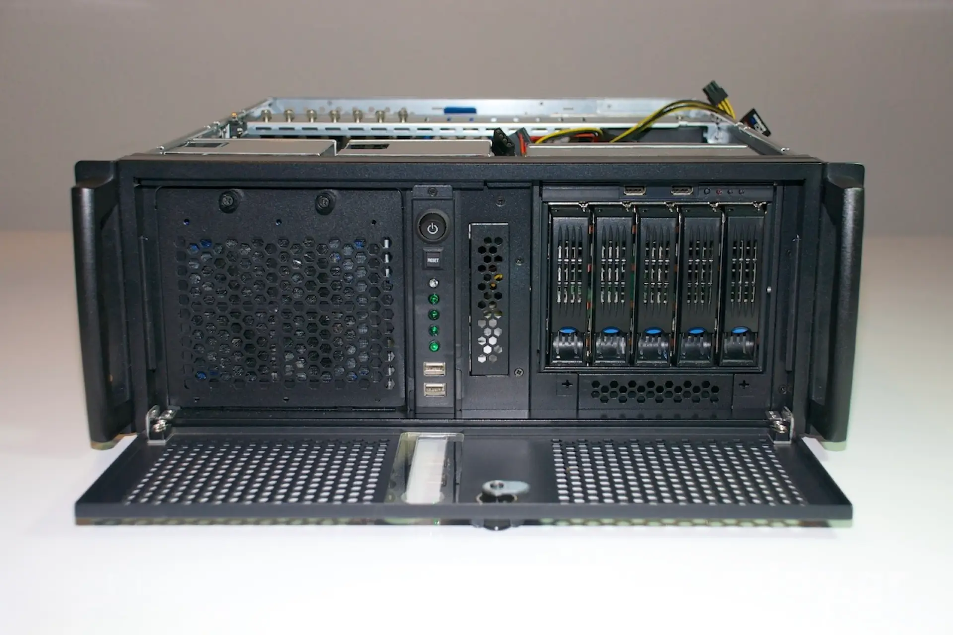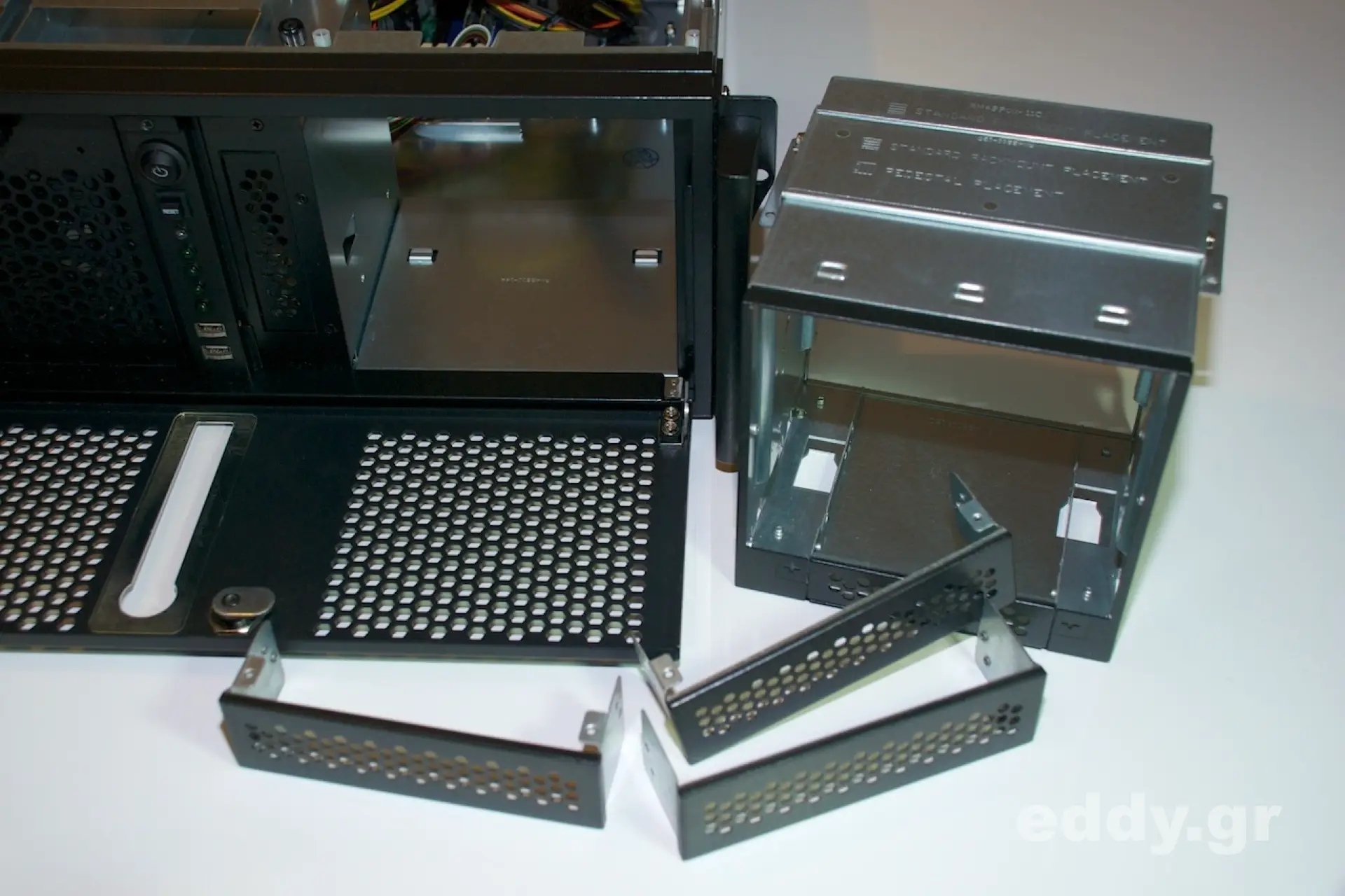 Trotz all seiner Vorteile ist das RM42200 ein 19″ Server Gehäuse und kein spezielles 19″ Storage Gehäuse. Durch die von Chenbro vorgesehene Modularität des RM42200 und das passend gestaltete 5er-Gehäuse SK33502 lässt sich jedoch diesbezüglich hinreichend Abhilfe schaffen. Für den häuslichen Server sind 5 Festplatten meistens genau das, was man für sein RAID oder ZFS RAID haben will.