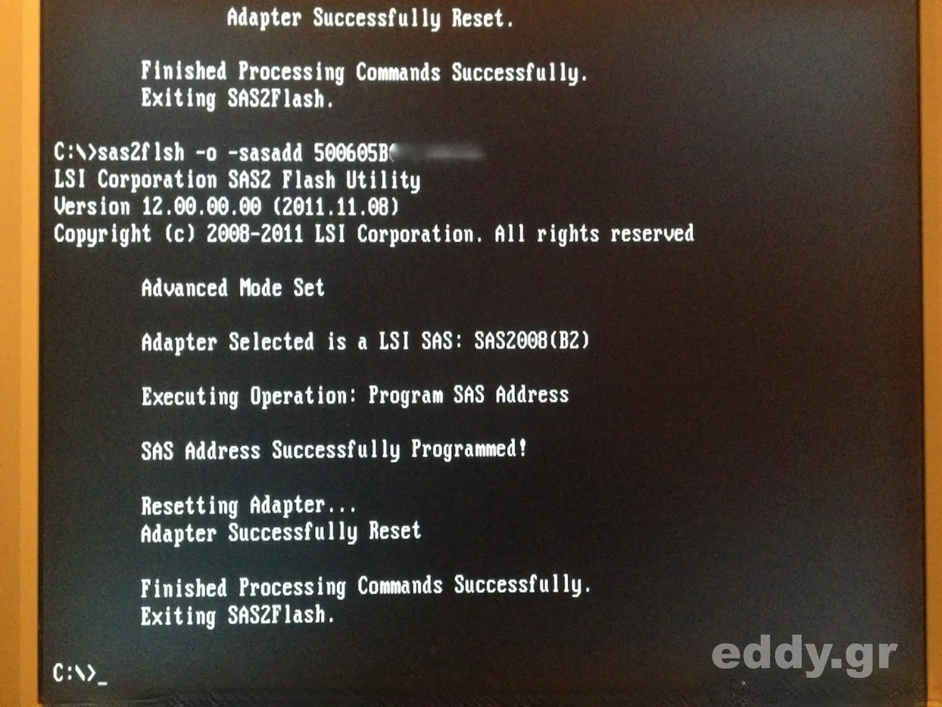 sas2flsh -o -f 2118it.bin -b mptsas2.romsas2flsh -o -sasadd 500605bxxxxxxxxx(x=Zahlen und Ziffern vom SAS Address Aufkleber, zu finden auf der Rückseite vom M1015)