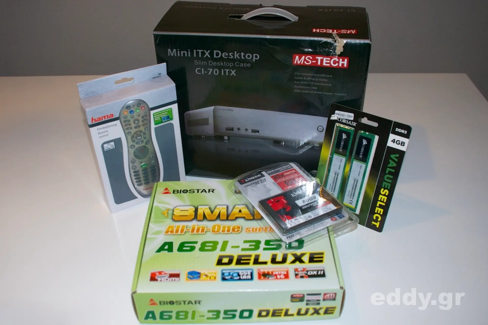 Erneut bauen wir einen HTPC, diesmal kleiner, schneller, schöner, leiser und stromsparender! Aufgrund der guten Erfahrungen mit AMDs E-350 greifen wir wieder zu dieser (für unseren Zweck) absolut ausreichenden APU. Das Motherboard-Format bleibt praktischerweise Mini-ITX, nur dieses Mal heißt der Hersteller Biostar. Im Vergleich zur damaligen Bauanleitung können wir nun eine separate Grafikkarte einsparen, da das verwendete Motherboard die für den Fernseher erforderliche HDMI-Schnittstelle onboard hat. Wie gehabt verzichtet unser Abspieler auf ein mechanisches DVD- oder Blu-ray-Laufwerk. Hierfür wäre das für dieses Projekt hergenommene Gehäuse auch schlicht zu klein und aufgrund des Kühlkonzepts eher ungeeignet.