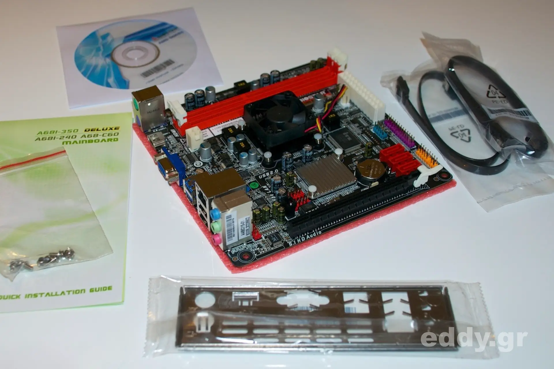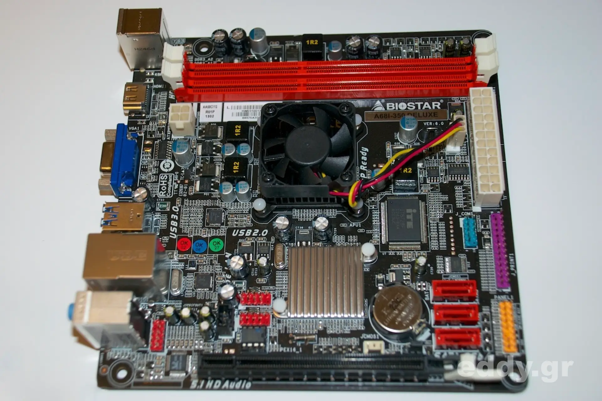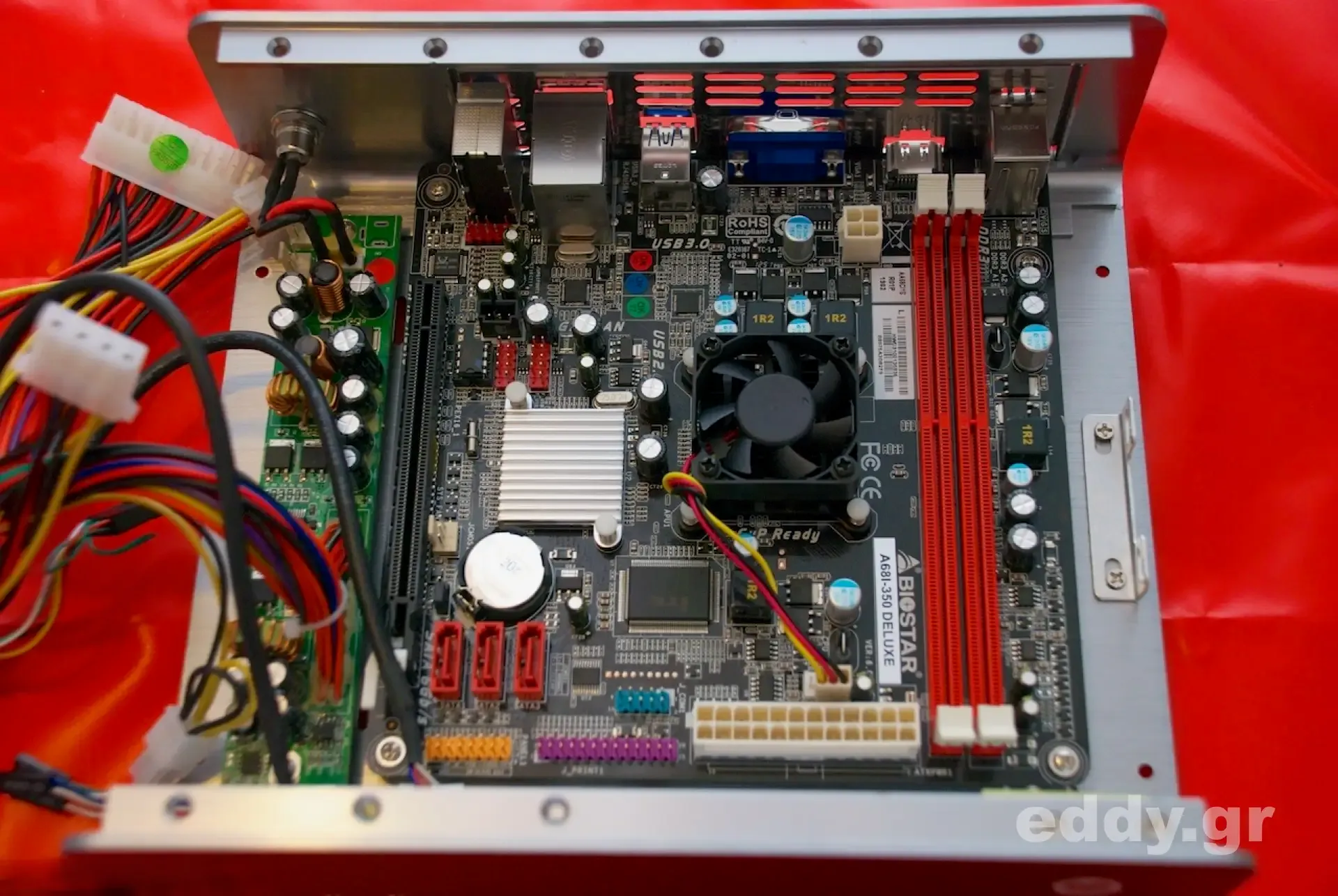 - Motherboard Biostar A68I-350 DELUXE mit AMD E-350 (und AMD Radeon HD 6310 Grafik) onboard