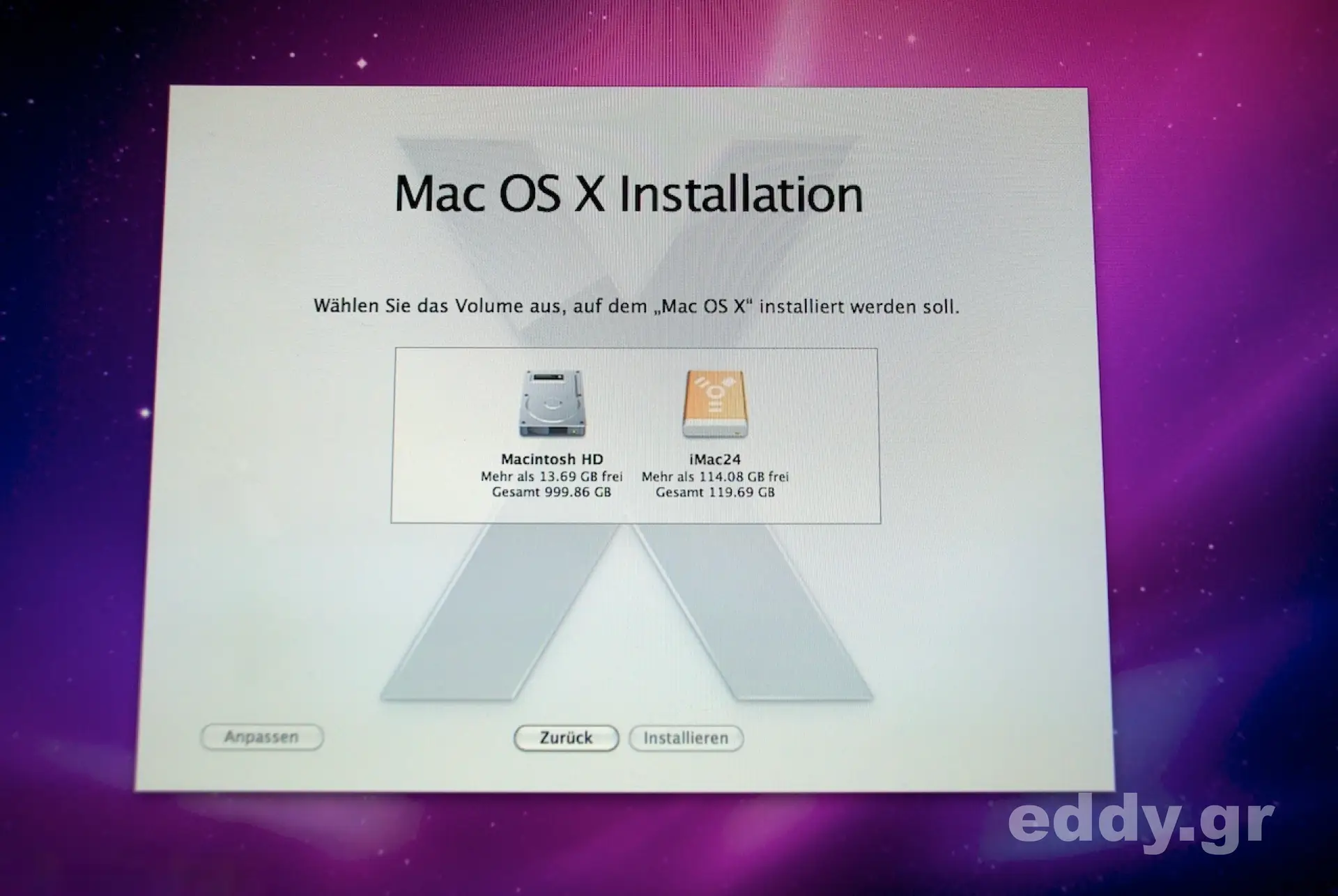 Firewire 800-Kabel stecken, Netzstecker in die Dose und das Sk-3500 mit dem Kippschalten hinten aktivieren. Unser Upgrade-Vorgehen sieht eine Neuinstallation von Mac OS X vor, frei lähmenden Altlasten und vor allem schlank im Platzbedarf. Die großen Library-Verzeichnisse, Musik und Filme können ruhig auf der internen Festplatte verbleiben.