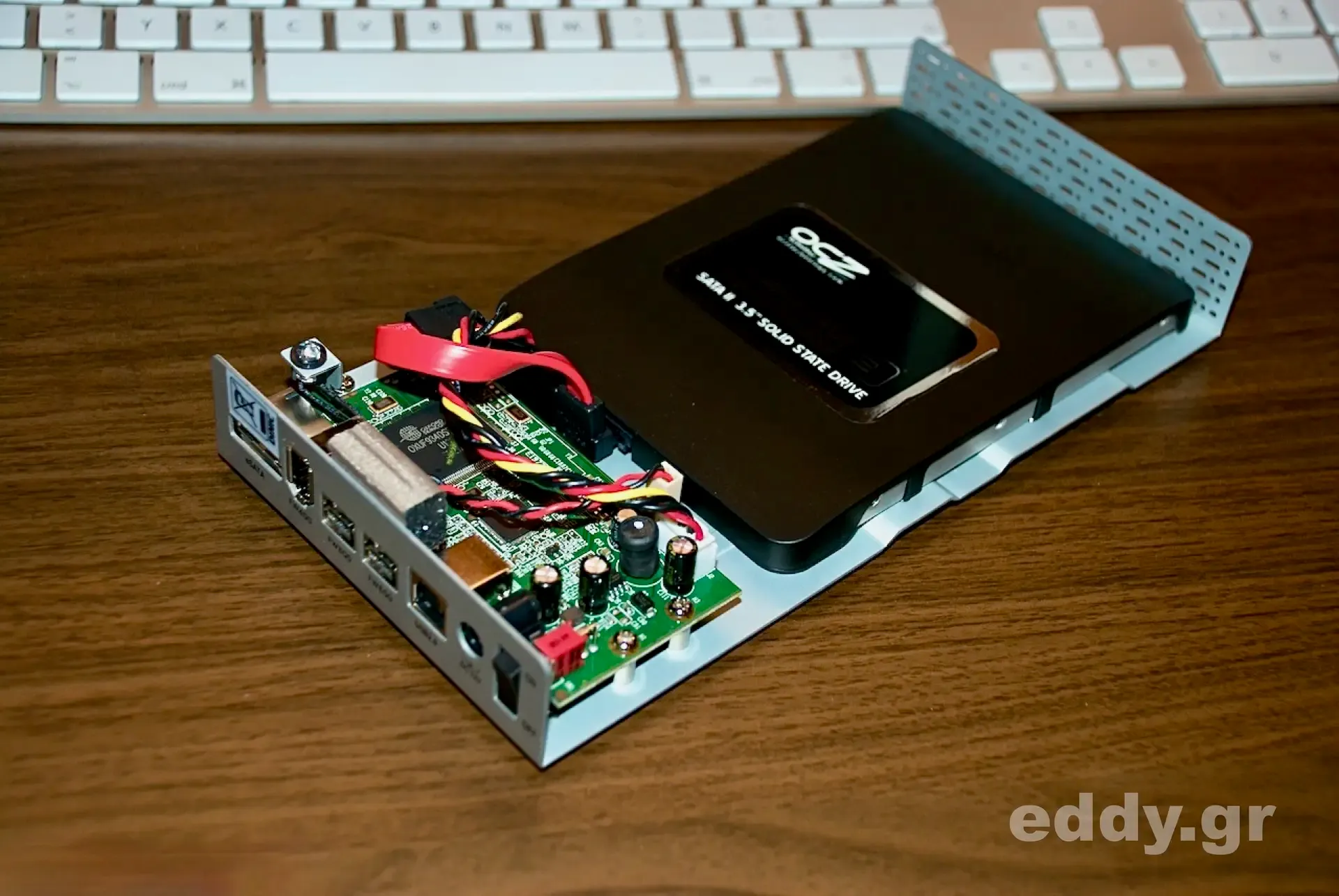 Forsch den iMac aufmachen und die SSD einbauen wäre sicherlich machbar, doch müsste hierzu das Deckglas abgenommen werden und dieses wäre keinesfalls trivial. Bleibt also der Firewire-800 Port auf der Rückseite und die Verwendung eines passendenden externen Gehäuses für unsere SSD, welche in diesem Artikel die von OCZ Vertex2 mit 128 GB sein soll. Sicher kann die Vertex2 von möglichen 280 MB über Firewire-800 ‘nur’ maximal 100 MB je Sekunde an den iMac liefern, aber aufgrund der sehr viel geringeren Zugriffszeiten (mehrhundertfach!) lohnt sich die hier gegebene Maßnahme allemal.