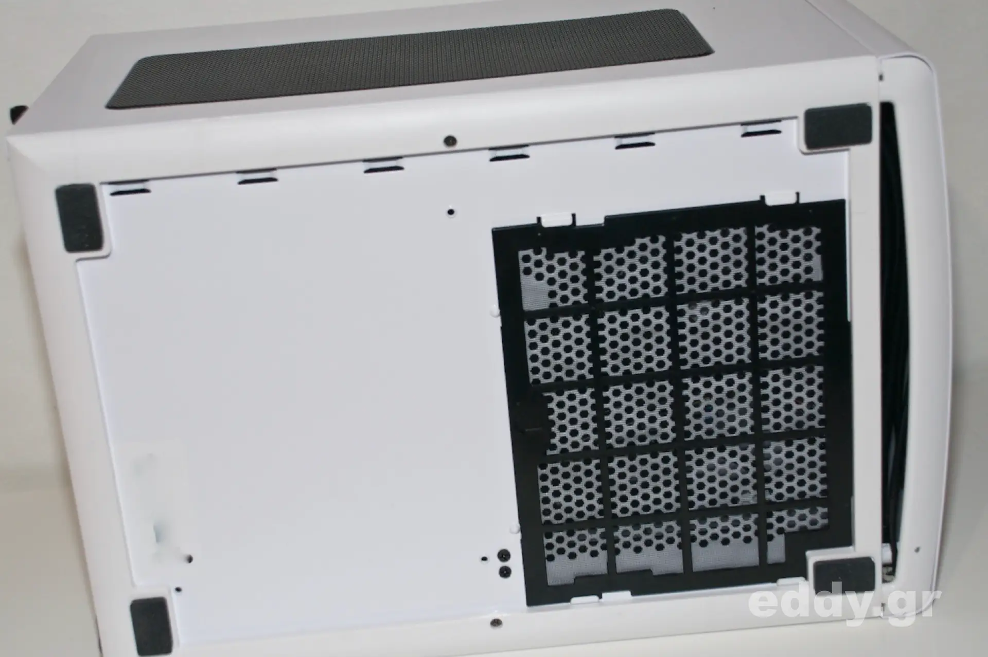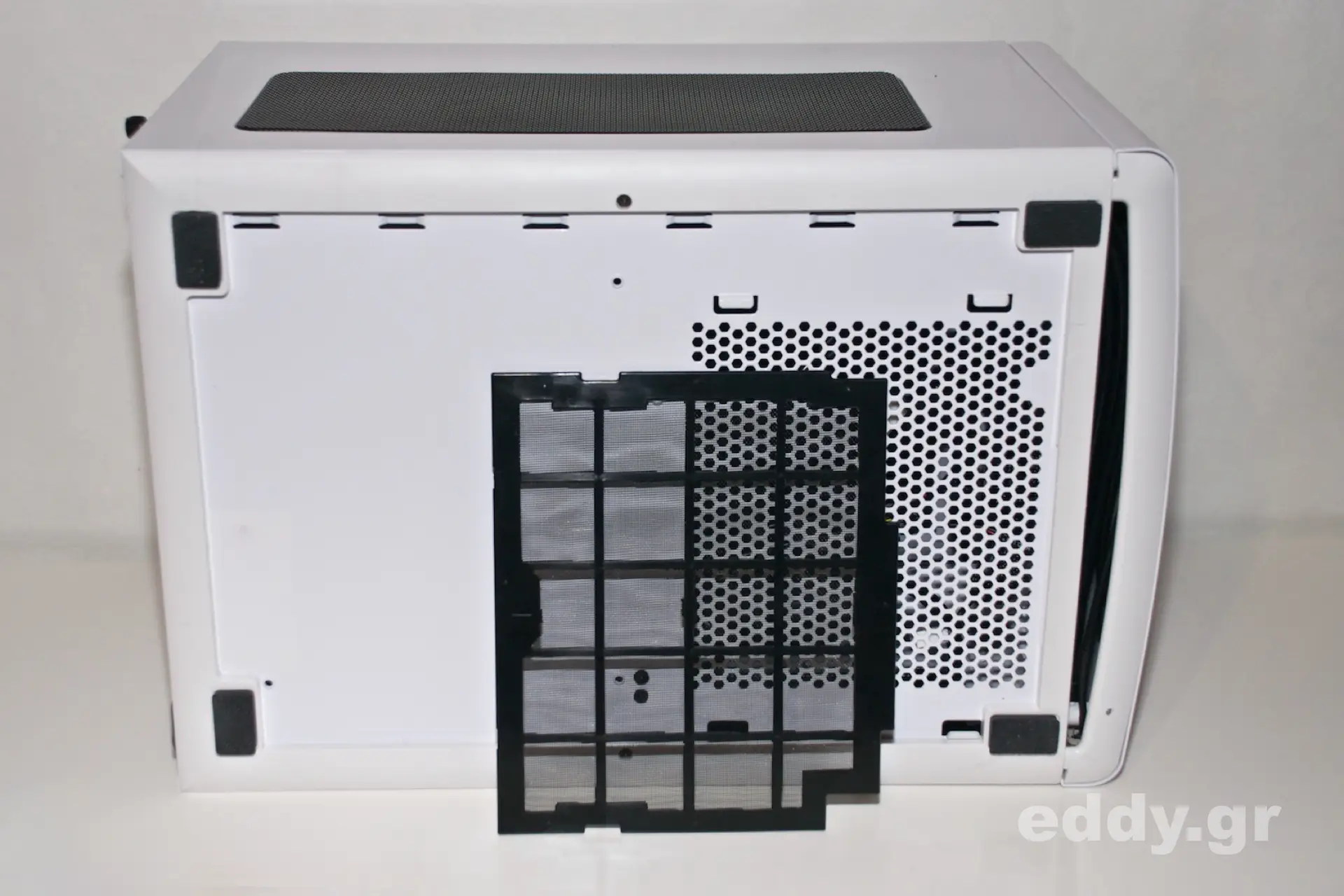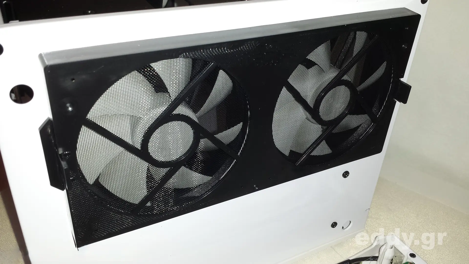 Die von mir immer gewünschten Staubfilter sind rundum vorhanden, mit Ausnahme der rückwärtigen Seite, an welcher der Lüfter ohnehin die warme Luft aus dem Gehäuse nach außen bläst. Das Konzept der Einfassung der Lüfter unterm Gehäusedeckel in feinmaschigen Gewebe mag ich nicht so recht verstehen.