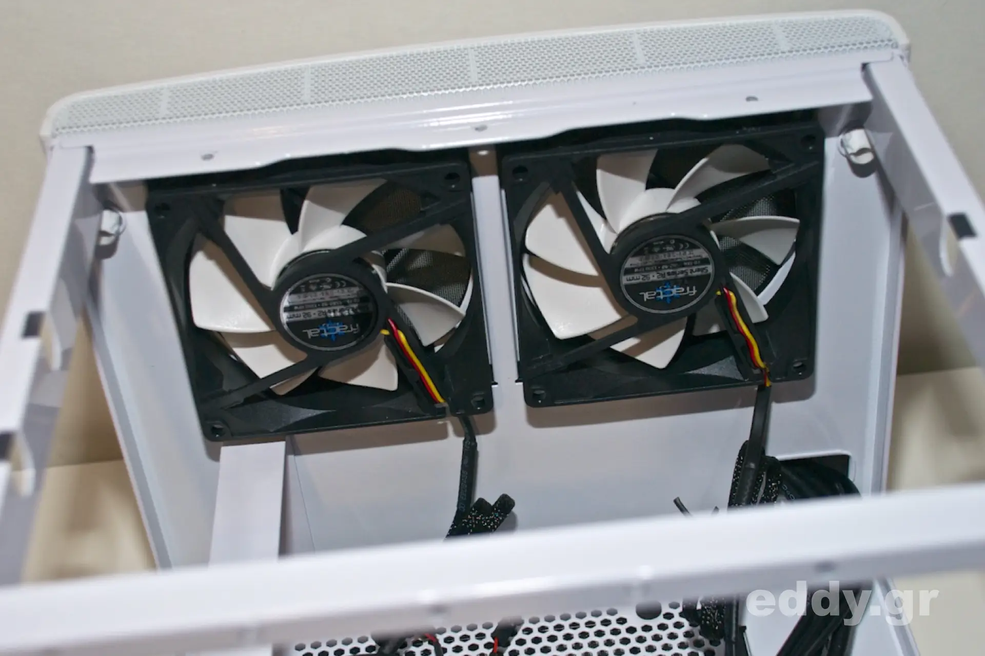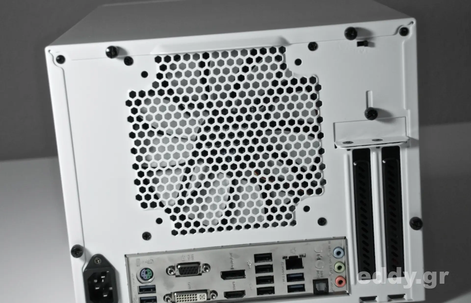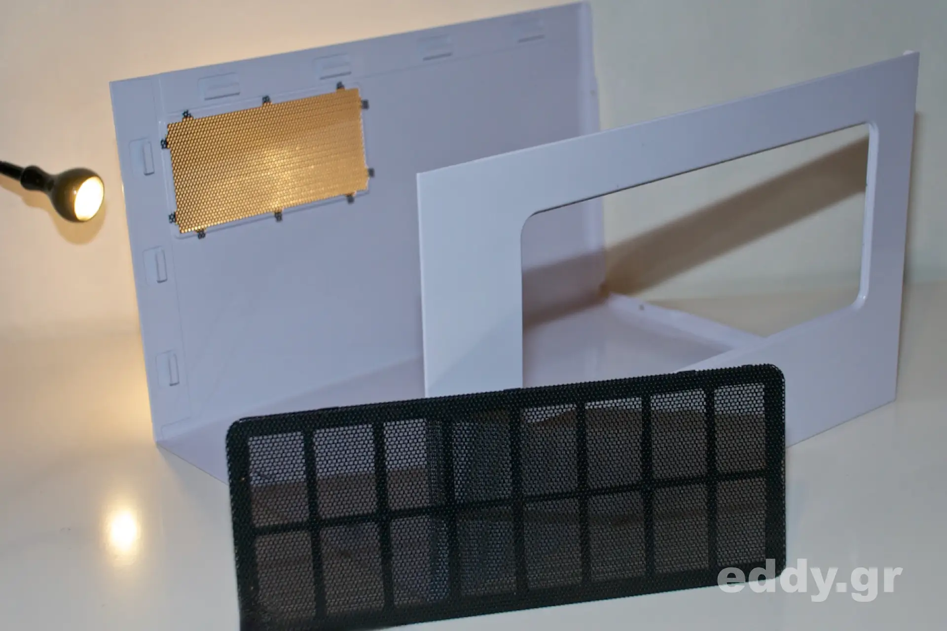 Die von mir immer gewünschten Staubfilter sind rundum vorhanden, mit Ausnahme der rückwärtigen Seite, an welcher der Lüfter ohnehin die warme Luft aus dem Gehäuse nach außen bläst. Das Konzept der Einfassung der Lüfter unterm Gehäusedeckel in feinmaschigen Gewebe mag ich nicht so recht verstehen.
