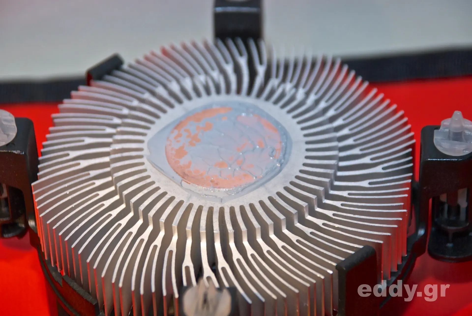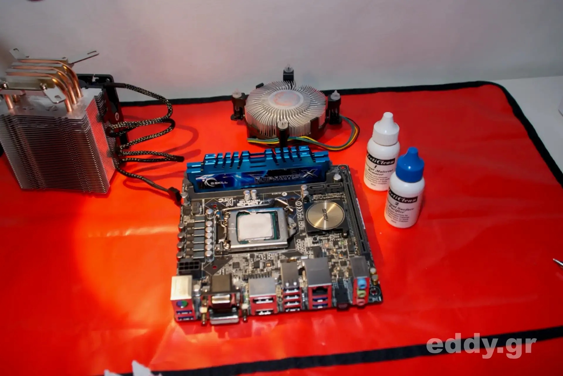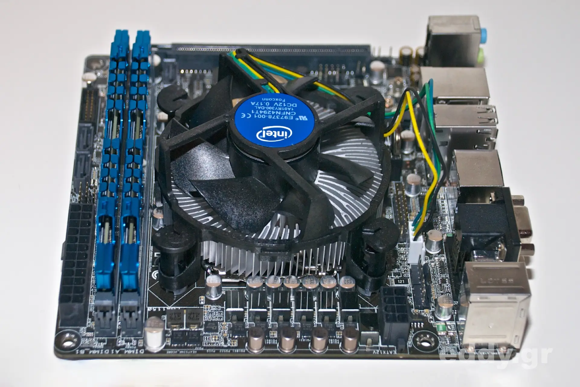 Da im teilespendenden ursprünglichen selbstgebastelten Gehäuse der ‘boxed’ Lüfter von Intel montiert war und ich im Node 304 der schieren Möglichkeit wegen einen großen Kühlkörper aufsetzen mochte, habe ich zunächst die alte Leitpaste in bekannter Manier entfernt. Zum Einsatz kam hiernach der Enermax ETS-N30-TAA Pollish Advance Prozessorkühler.