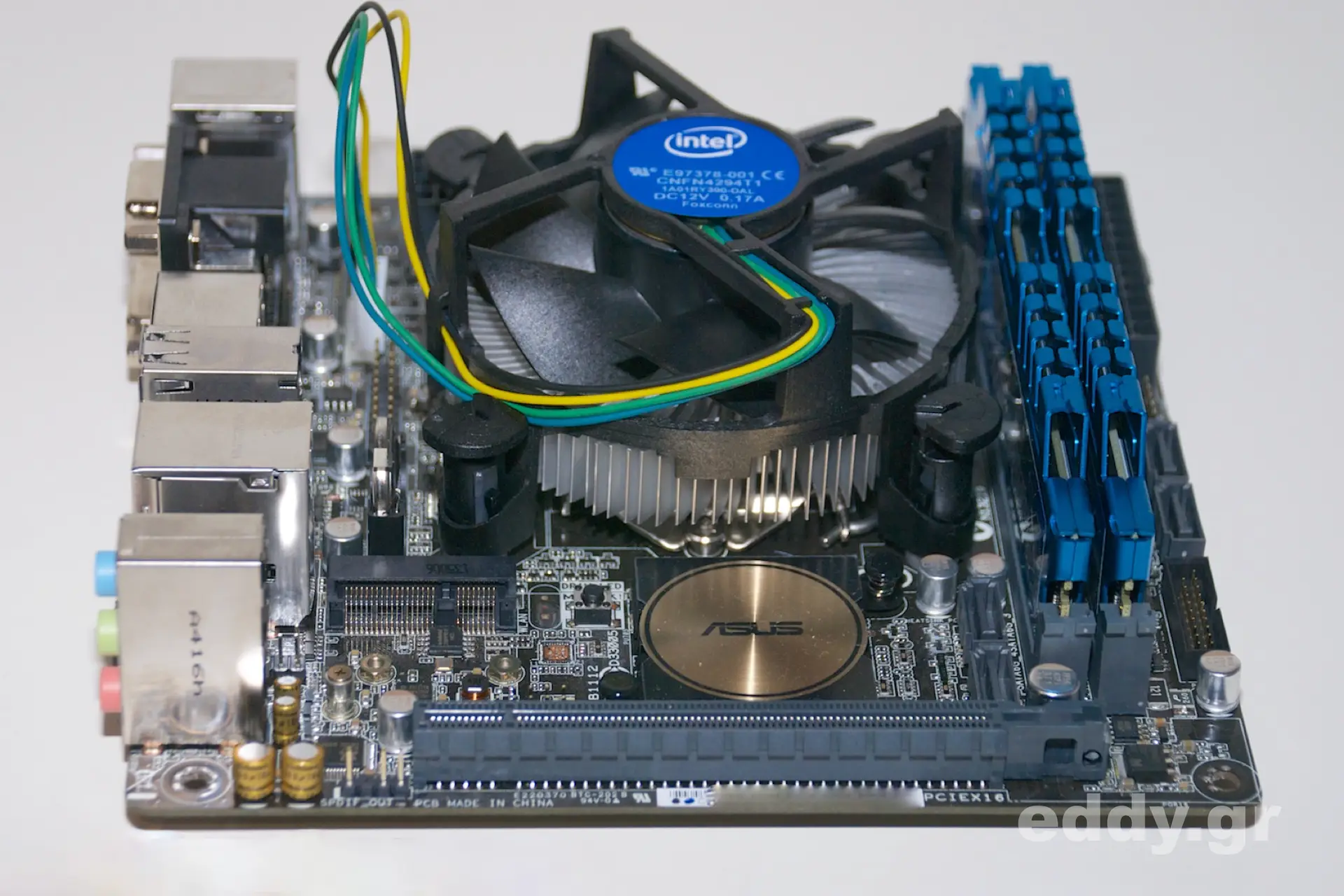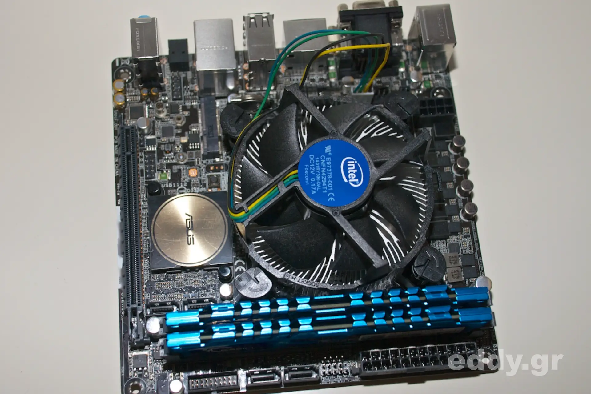 Um einen realen Aufbau mit Ziel eines Linux Mint-Arbeitsplatzes zu wagen, habe ich ein Mainboard vom Typ Asus Asus H97I-Plus aus einem anderen Projekt zur Hand genommen, zusammen mit einer Intel G3258 ’20th Anniversary’ CPU. Beide Komponenten sind übrigens wärmste Empfehlungen. So habe ich das H97I-Plus als sehr problemlos kennengelernt. Es ist mit hochwertigen elektronischen Bauteilen bestens verarbeitet, hat eine großartige Lüftersteuerung und die G3258 CPU ist sowieso ein richtiger Preis/Leisungs-Tipp!