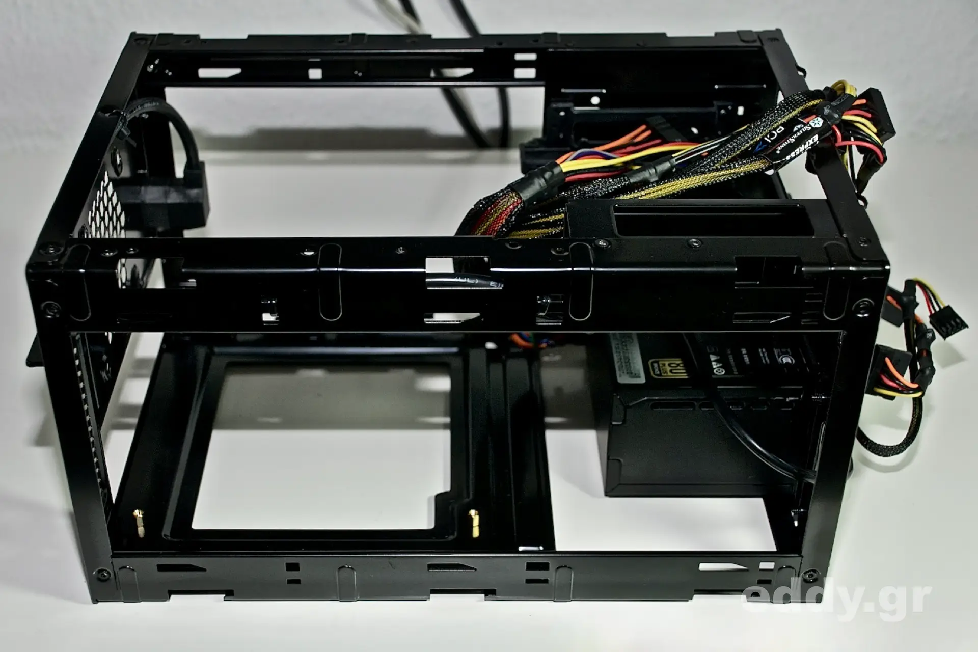 Damit kommen wir auch schon zu dem Netzteil. Das Sharkoon QB One verlangt nach einem SFX-Netzteil und da ist der Dauerfavorit ohne Einschränkungen das SilverStone SST-ST30SF. Ein schniekes 300-Watt-Würfelchen, welches bei einfacher Last so kühl bleibt, dass der Netzteillüfter sich gar nicht erst dreht.