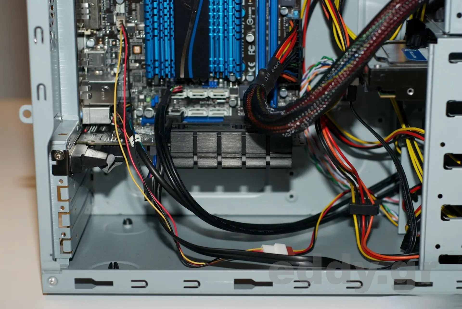 Unser OpenELEC Media Center PC braucht natürlich keinen 8-Kern-Monsterrechner mit turbinenartigen Kühlmaßnahmen, lauten Festplatten und alles womöglich noch im großen Tower-Gehäuse. Darum verwenden wir in unserer Bauempfehlung das bereits an anderer Stelle von mir vorgestellte Mainboard Asus E35M1-I im Mini-ITX Format mit integrierter AMD E-350 CPU und passivem Prozessorkühler. Da das Mainboard keine HDMI-Schnittstelle zum Anschluss des Fernsehers besitzt, greifen wir zu der billigen PCI-E Grafikkarte XFX HD6450, welche aber trotz ihres Preises für oft unter 40 EUR mit einem Gigabyte GDDR-Speicher daherkommt und vor allem dem besagten HDMI-Standard 1.4a genügt.