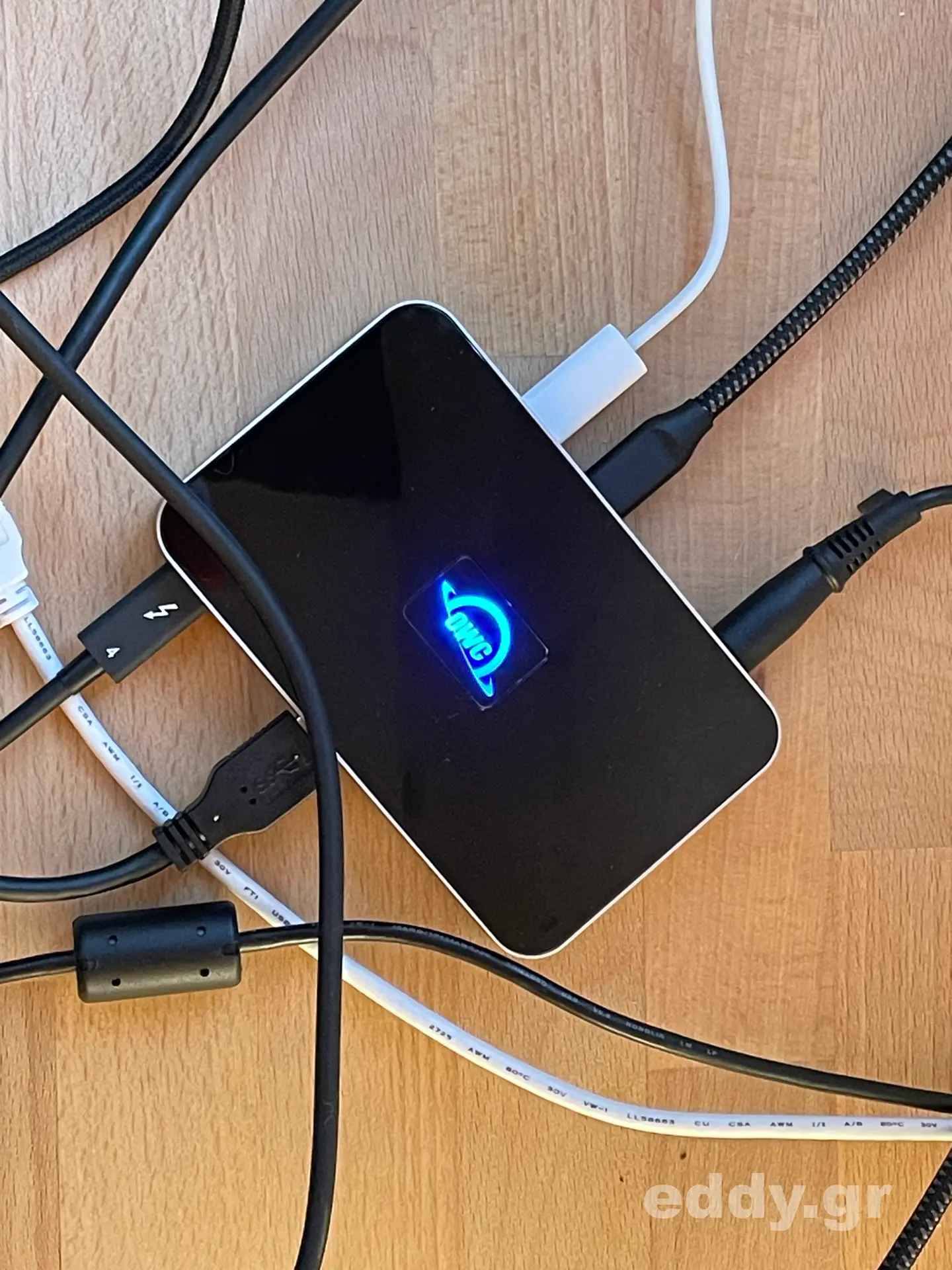 Das Ding ist wirklich für den Apple gestaltet und das merkt man auch. Keinerlei Nebenwirkung mit Bezug auf den Ruhemodus, zwei 4K Monitore oder ein 5K, 6K oder sogar 8K Display wird unterstützt, ein HDMI-Port ist noch dran, 60 Watt Ladepower liegen an und es gibt von OWC ein Softwaretool namens Dock Ejector, welcher beim Anschluss von NVME-Speichern bzw. RAID-Kram sicherstellt, dass das "Auswerfen" erst nach dem Wegschreiben des letzten Bits passiert. Die Ports teilen sich auf in: