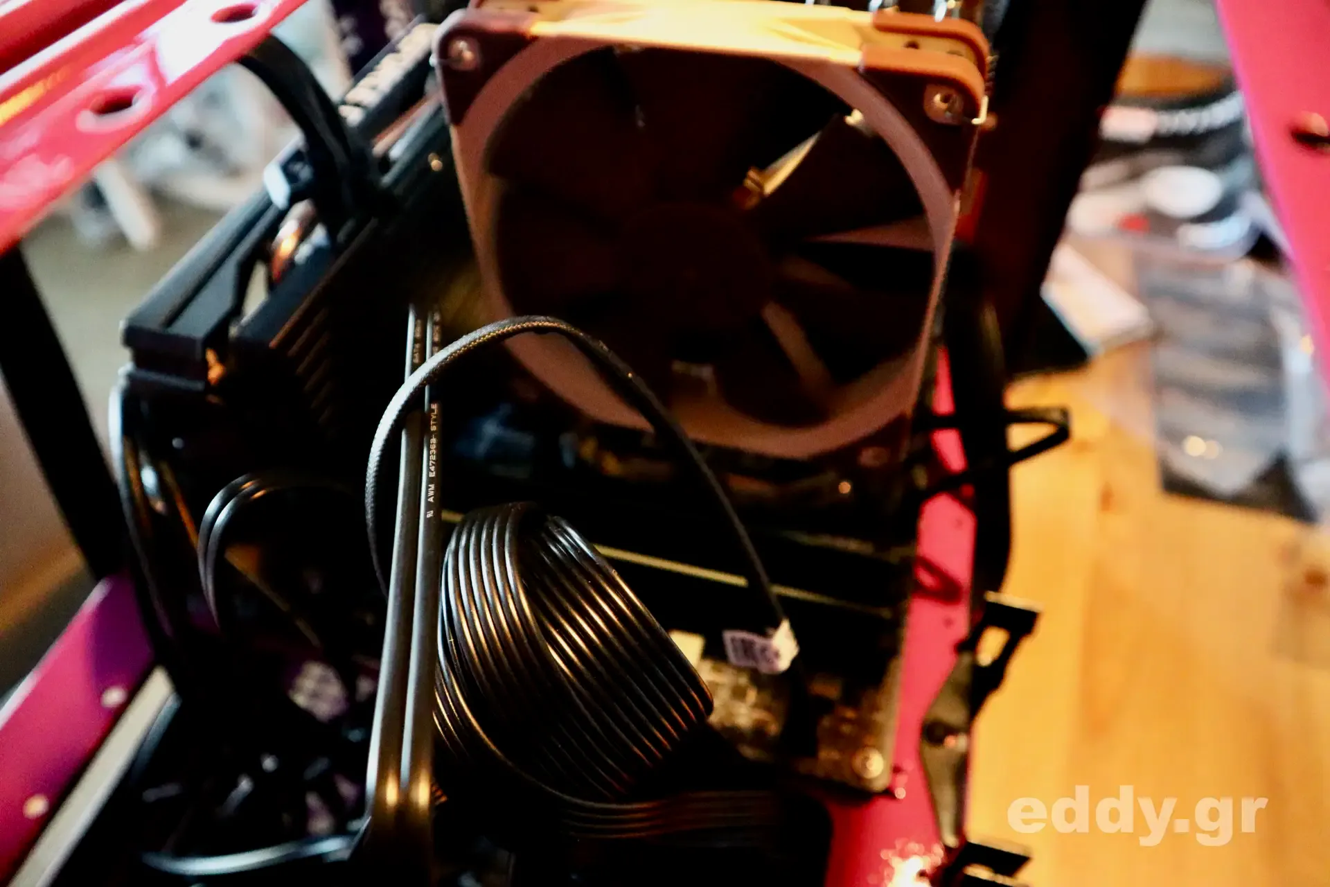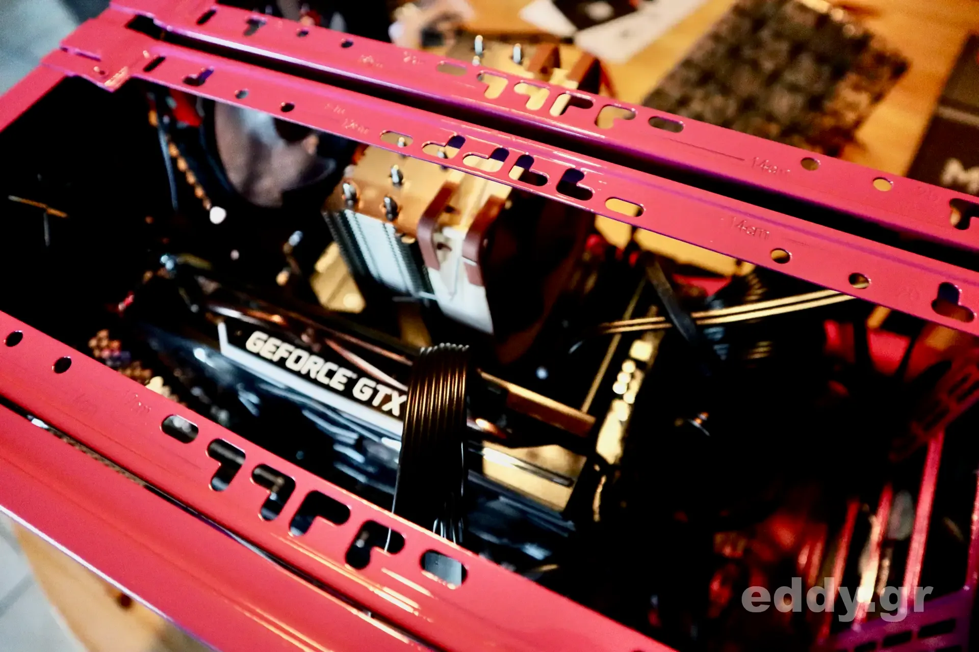 Nach drei Lackierdurchläufen, einem problemlos montierten Noctua-Lüfter und einem blitzschnellem fehlerfreien Aufbau schnurrt das purpurne Glück im harten Dauereinsatz eines dauerzockenden bärtigen Mannes. So soll es sein.
