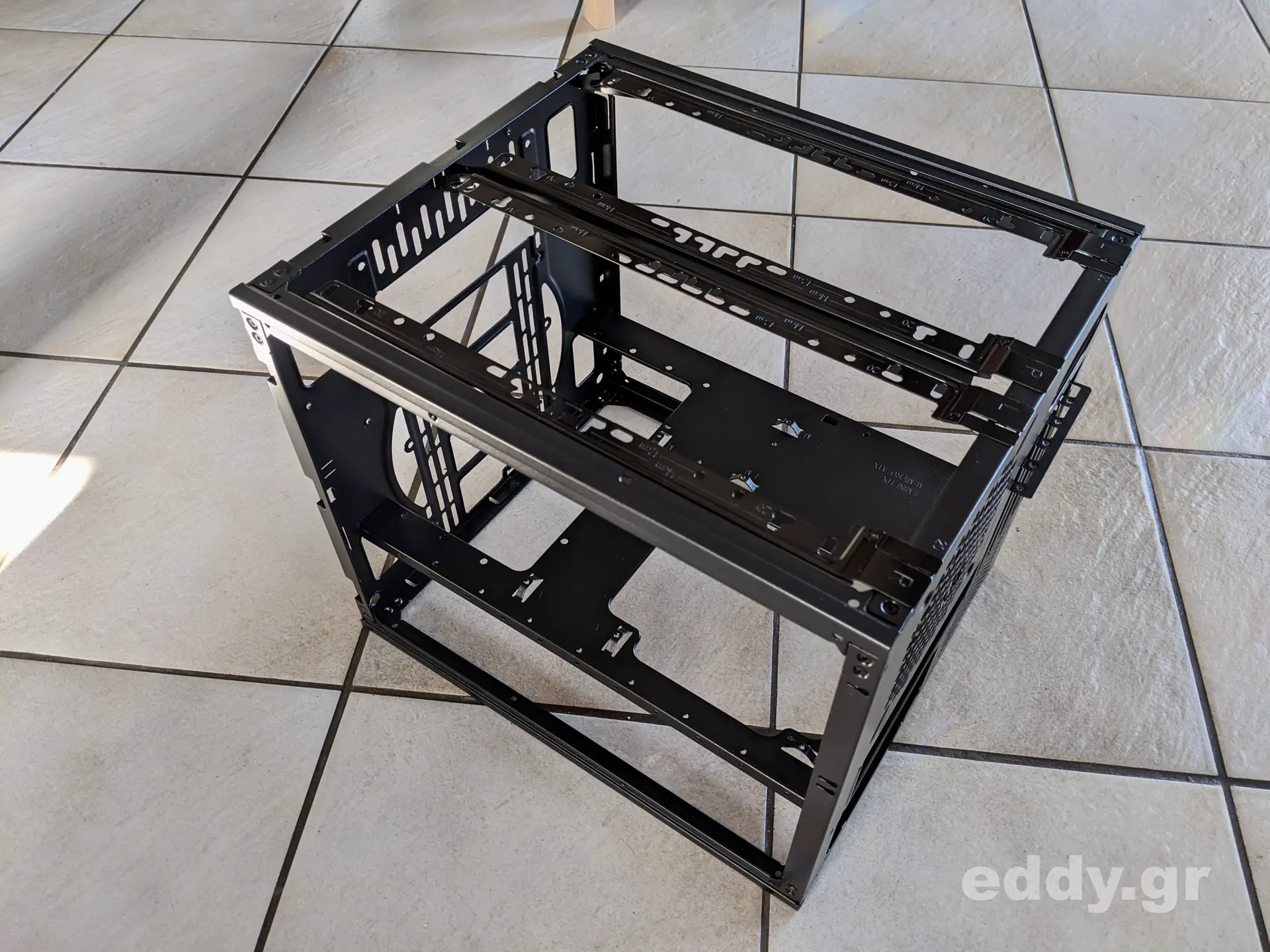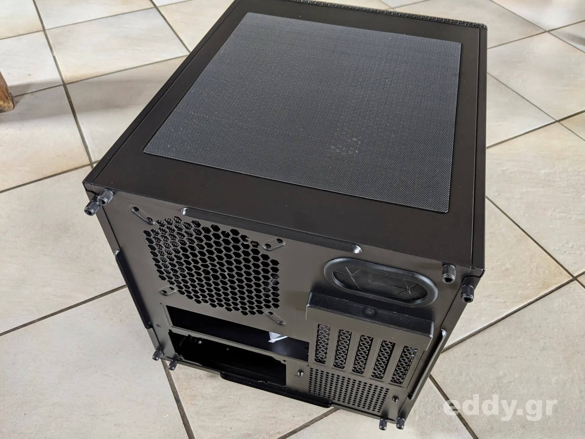 Compañero Marcel vertraute meinem Rat, ein Cube Gehäuse als das richtige Konzept zu sehen für einen gar nicht so leichten Lüfter nebst der dedizierten Grafikeinheit. Vertikal montierten Mainboards mit jahrelang in Richtung Erdmitte am PCB reisenden CPU-Kühlern vermochte ich noch nie großes Vertrauen zu schenken. Der pfiffige Würfel Thermaltake Core V21 macht es besser und er ist zudem komplett und schnell rupfbar, auch im fertigen Zustand.