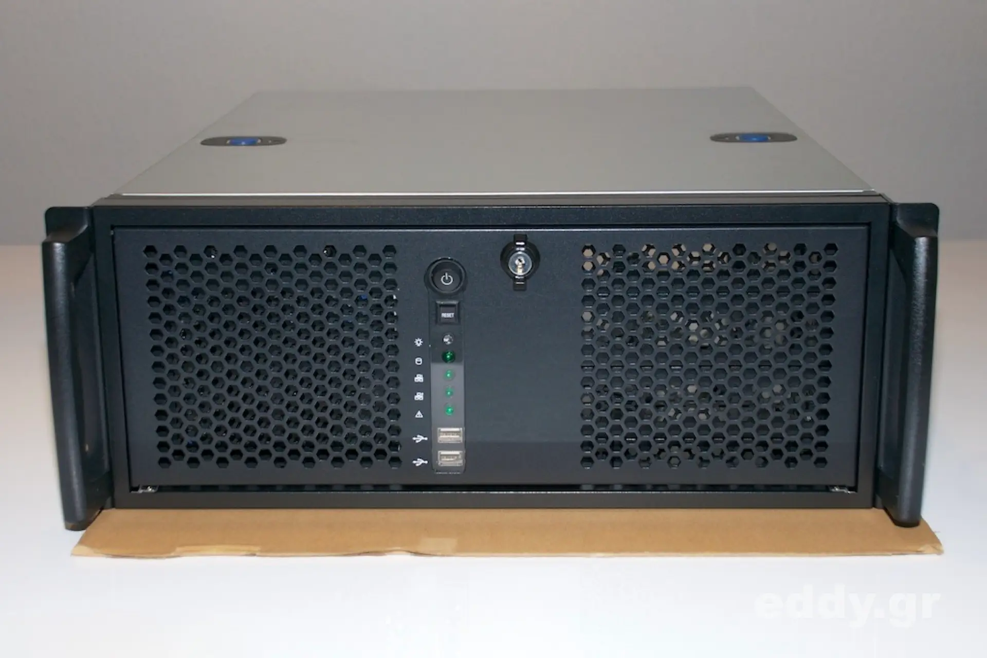 In diesem kleinen Artikel stelle ich ein ganz besonderes 19″-Gehäuse mit 4 Höheneinheiten und 522mm Einschubtiefe vor: Das Chenbro RM42200. Die fürs Rack wünschenswerten Einbauschienen müssen übrigens im Normalfall extra erworben werden. Worte vermögen nicht zu vermitteln, wie groß die allgemeine Wertschätzung bei Hobbyadmins da draußen für diesen Universalisten ist (und einmal mehr ertönen die himmlischen Fanfaren). Dieses für Homeserver geradezu prädestinierte Gehäuse genießt in der Netzgemeinde einen makellosen Ruf. Ebenfalls ist es mit Sicherheit das in meinem Umfeld meistverwendete 19″-Gehäuse. Die vielfältige Nutzbarkeit, der robuste Aufbau und die Verarbeitungsqualität für knapp 180 EUR suchen ihresgleichen.
