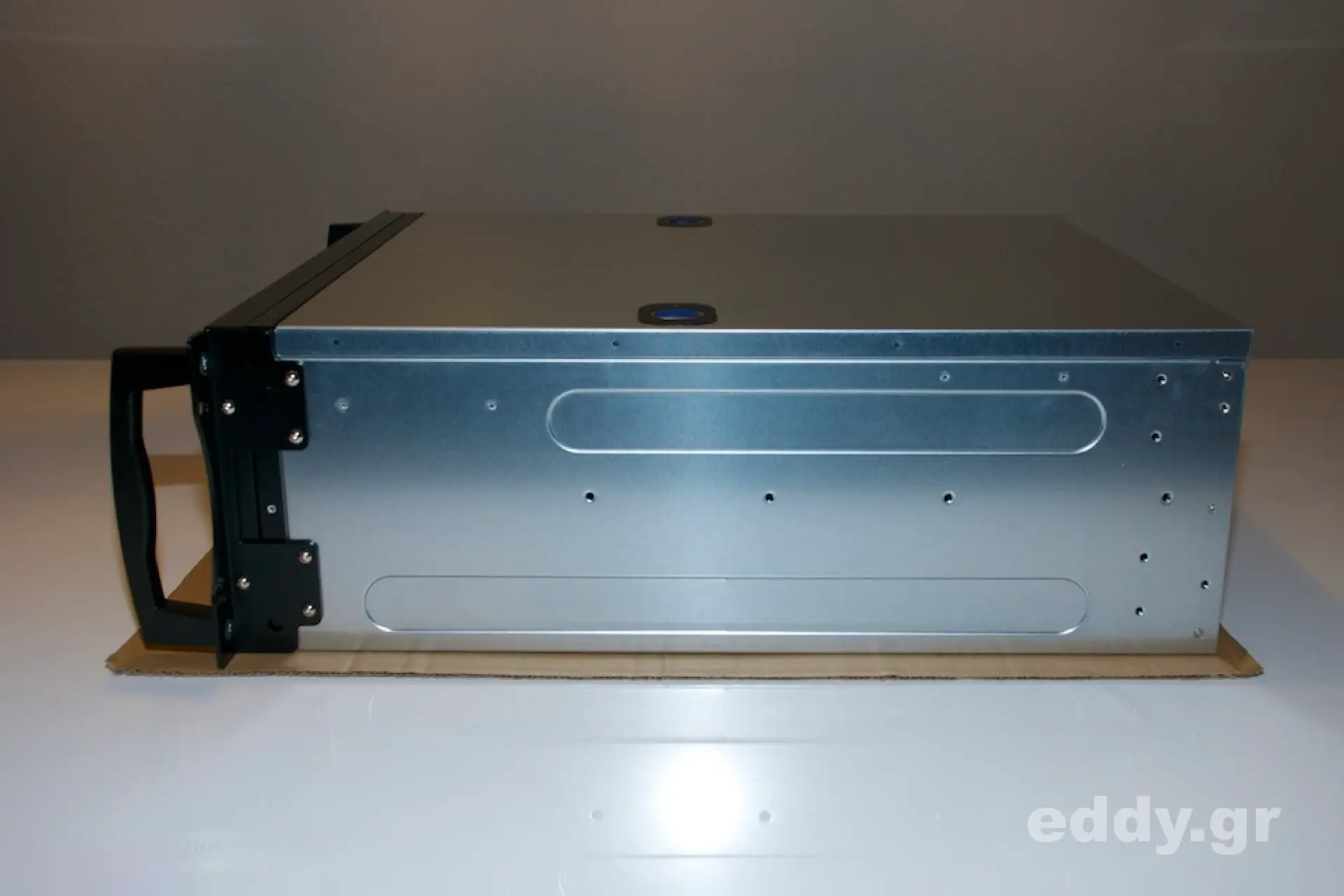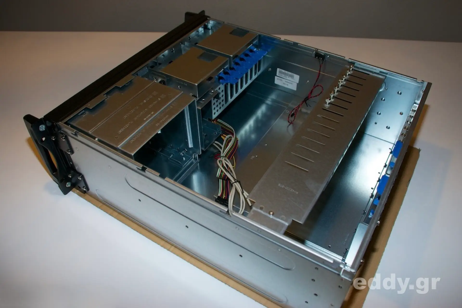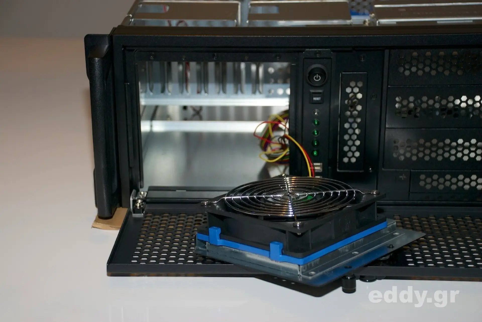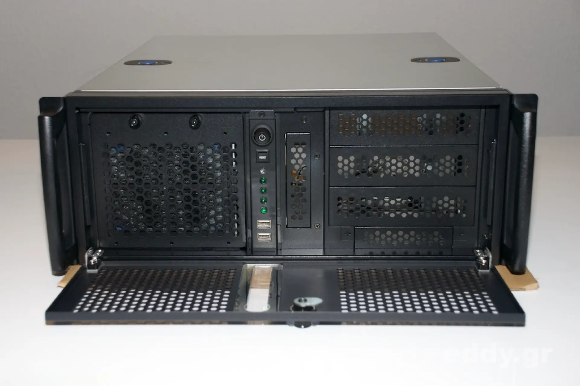 In dem genannten Szenario tun also 4 Höheneinheiten für ein Einschubgehäuse nicht weh. Damit ist der häusliche Nerd aus jener Not entlassen, sich über Low Profile CPU Cooler und 1HE-Netzteile Gedanken zu machen. Hier kann man im wesentlichen das verwenden, was bereits vorhanden ist oder jenseits unterhalb der hochpreisigen reinrassigen Serverhardware einkaufen und Komponenten zusammenstellen.
