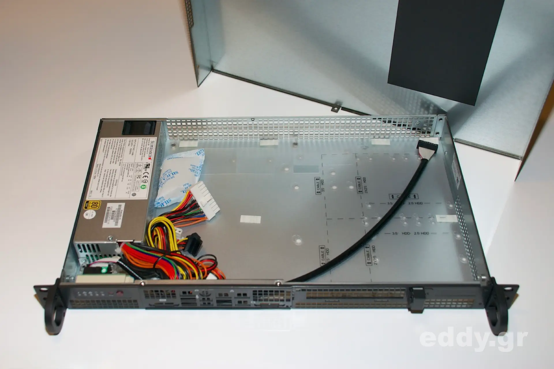 Doch genug der vielen Worte. Dieser kleine Artikel soll des Weiteren auch prima Fotos vom SC505-203B liefern, denn gerade daran mangelt es im Moment im World Wide Web. Supermicro selbst lässt detaillierte Fotos vermissen und manche Einblicke aus manchen Perspektiven suchen sich schlicht vergeblich. Auch sonst trifft man aktuell nirgends auf entsprechendes Bildmaterial. Dieses will ich hier mit ein paar Schnappschüssen beheben. So wird das SuperChassis hoffentlich noch weitere Freunde jenseits der Rechenzentren finden.
